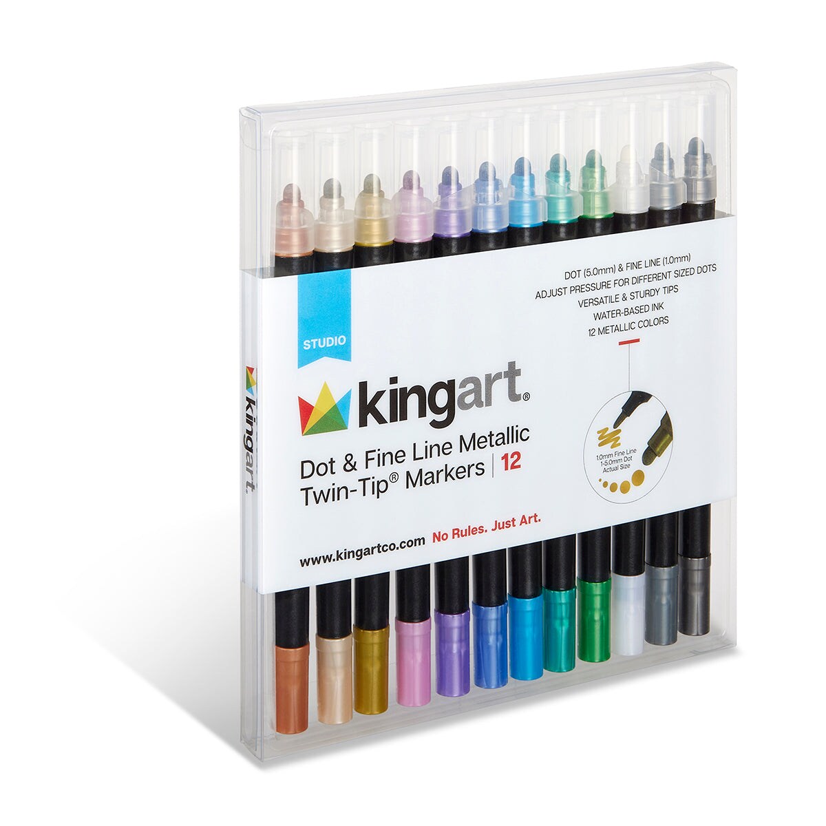 KINGART Dot & Fine Twin-Tip™  Metallic Markers, 12 pc. Set