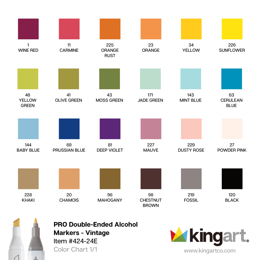 KINGART® Double-Ended Alcohol Markers 24 Vintage Colors