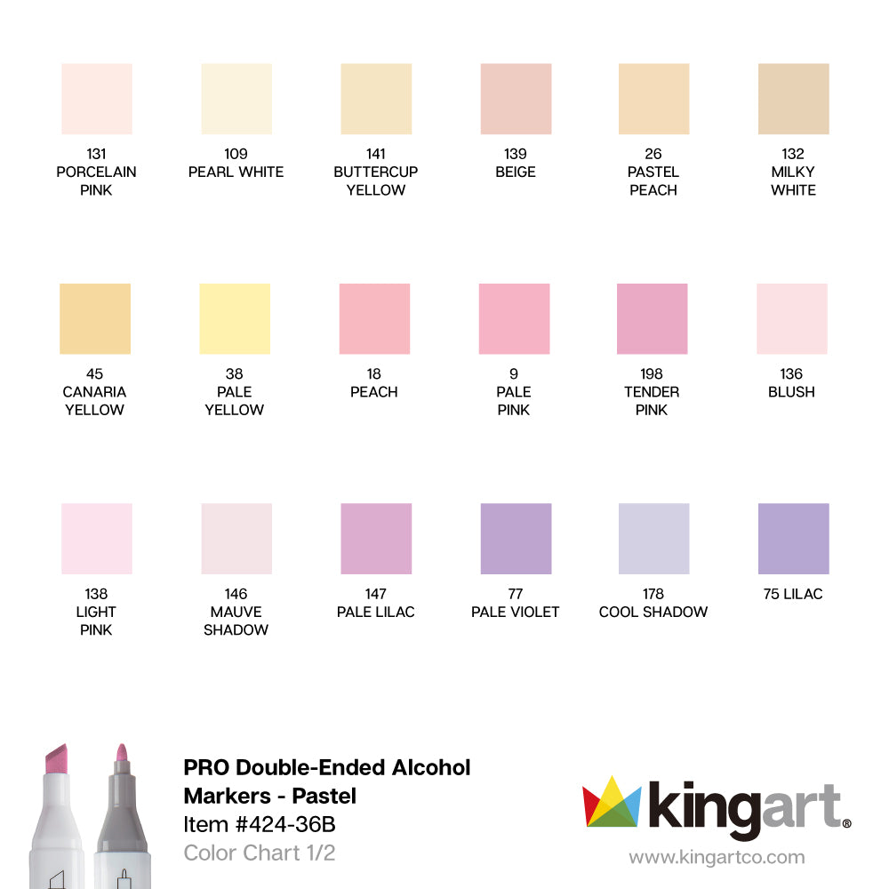 KINGART® Double-Ended Alcohol Markers 36 Pastel Colors