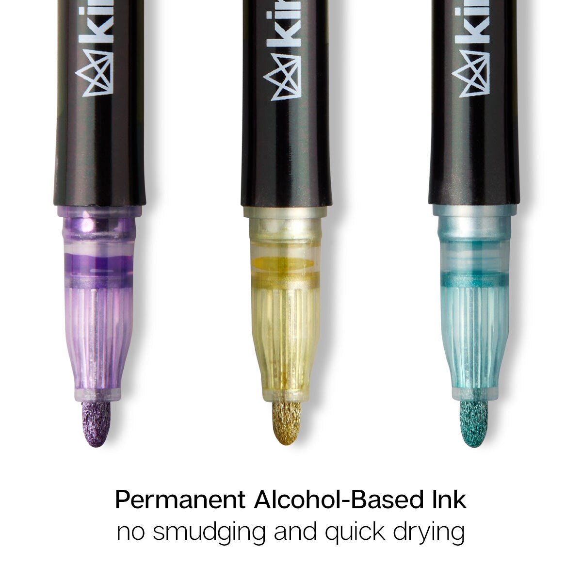 KINGART® Outline Markers - 12 pc. Set, Metallic Silver with Color Outlines