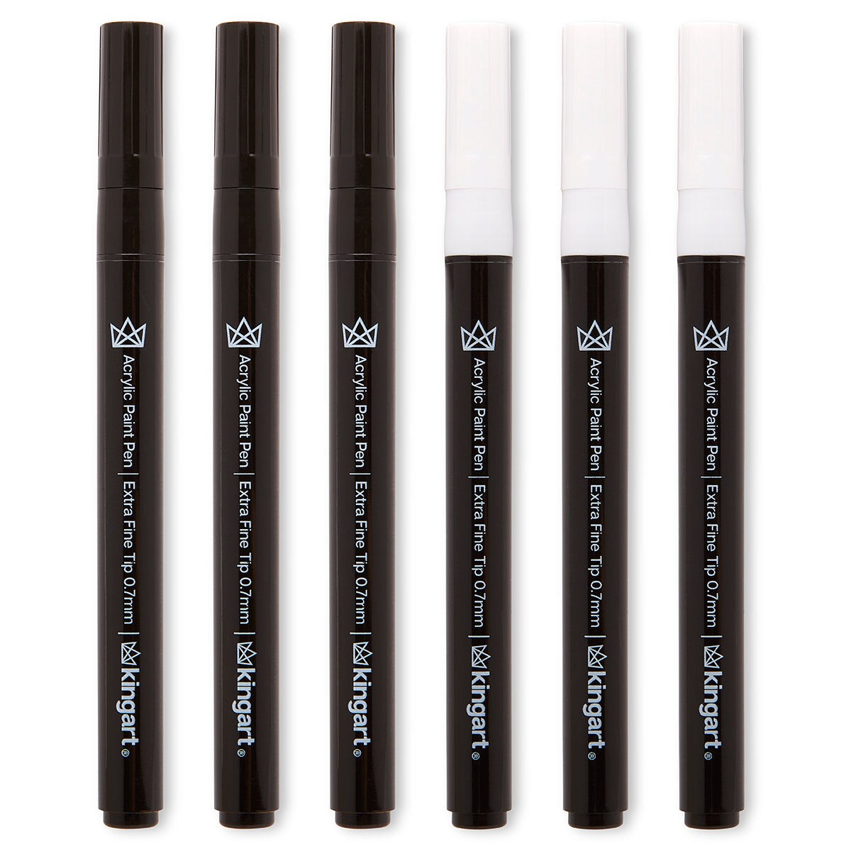 KINGART® PRO Paint Pens Extra Fine Tip, Black & White 6 pc