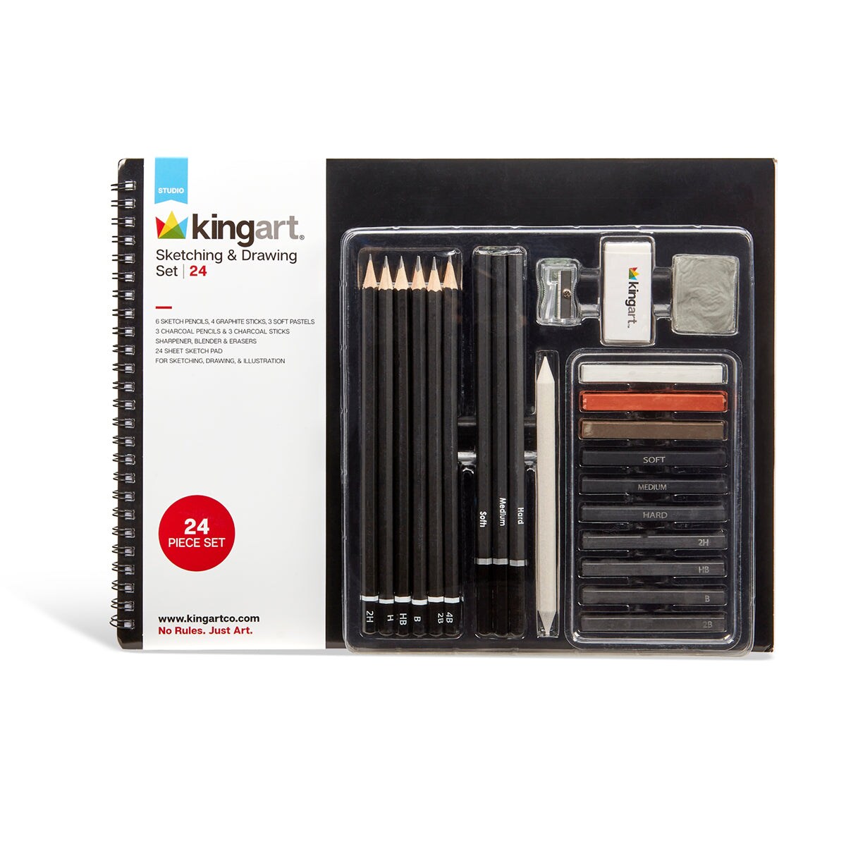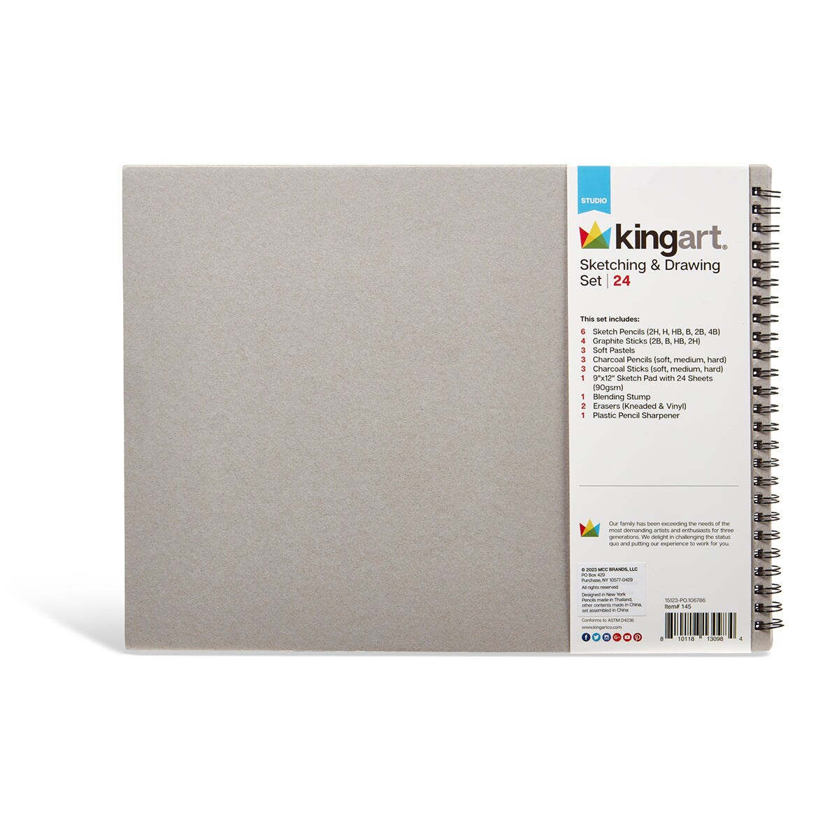 KINGART® Sketching & Drawing Combo, Hardcover Book & 26 pc Pencil Set