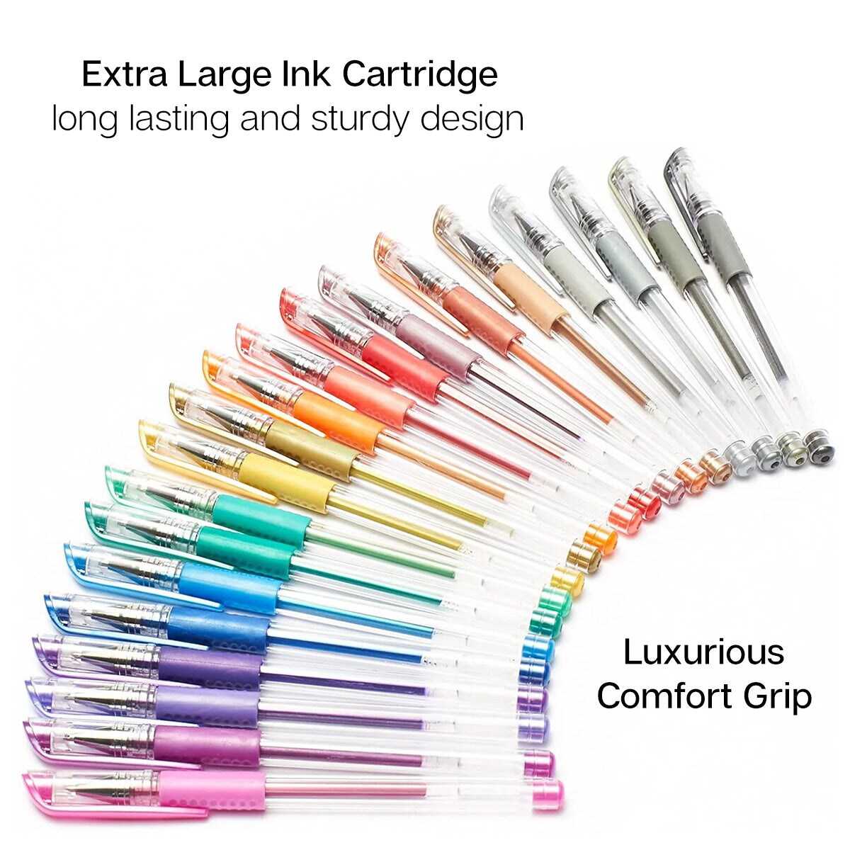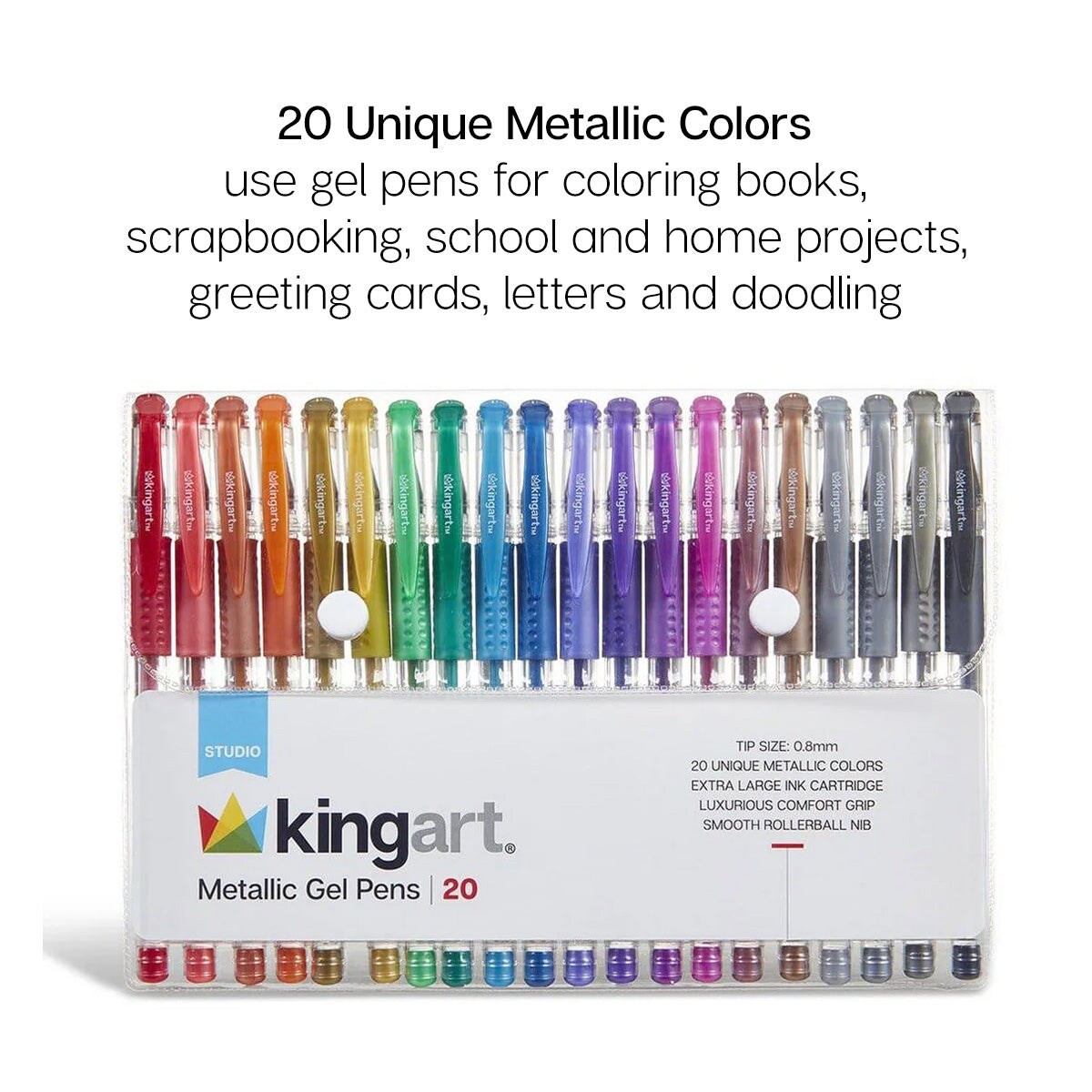 KINGART® Soft Grip Metallic Gel Pens, 2.0mm Ink Cartridge, Set of 20 Unique Colors