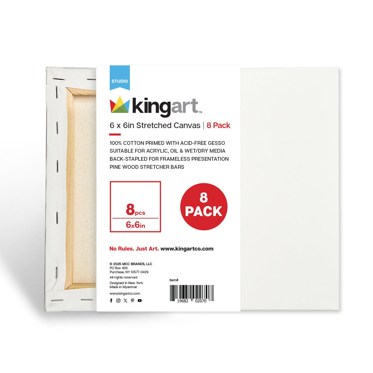 KINGART® Stretched Canvas 6x6 8 pc