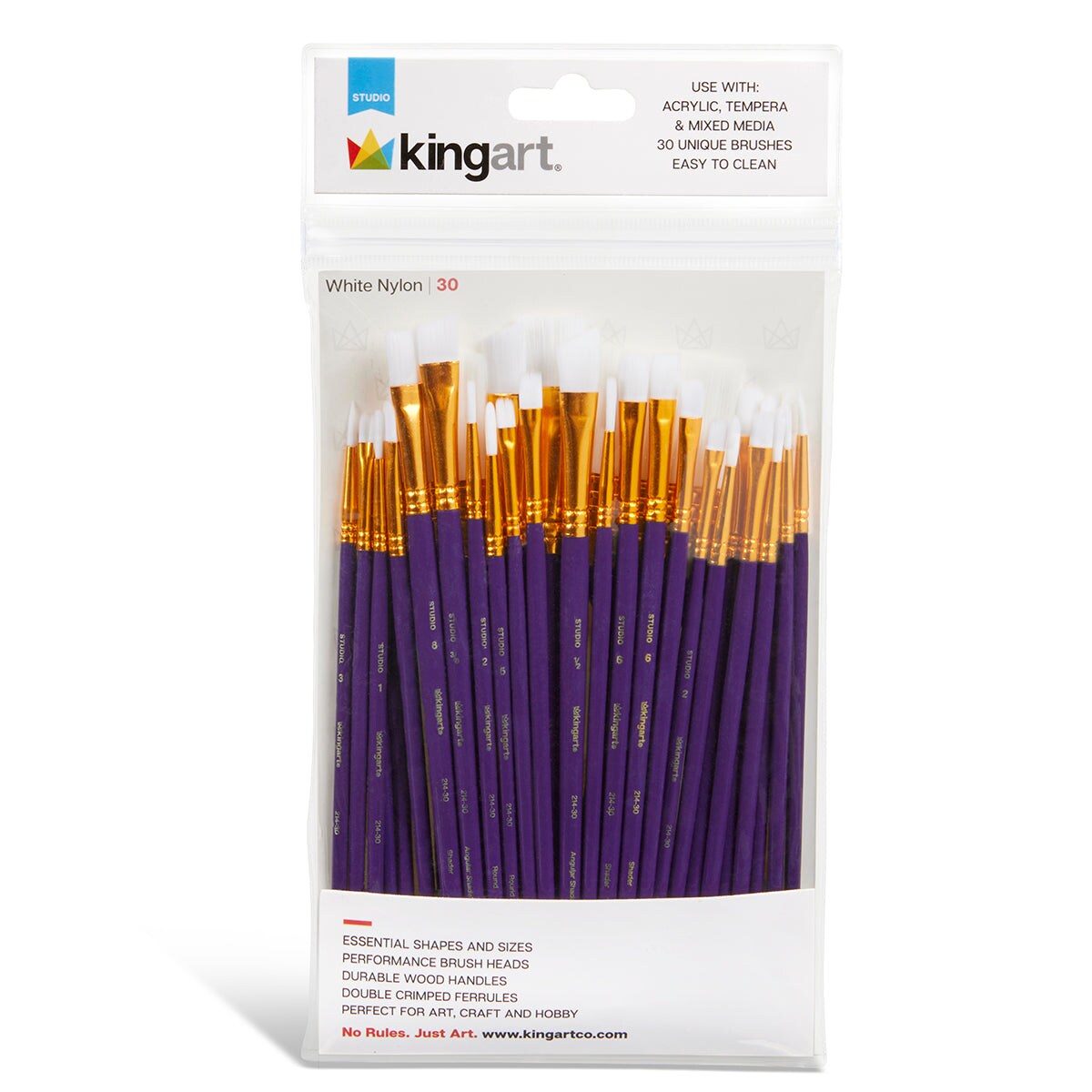 KINGART® Studio White Nylon Brush Set - 30 Pieces