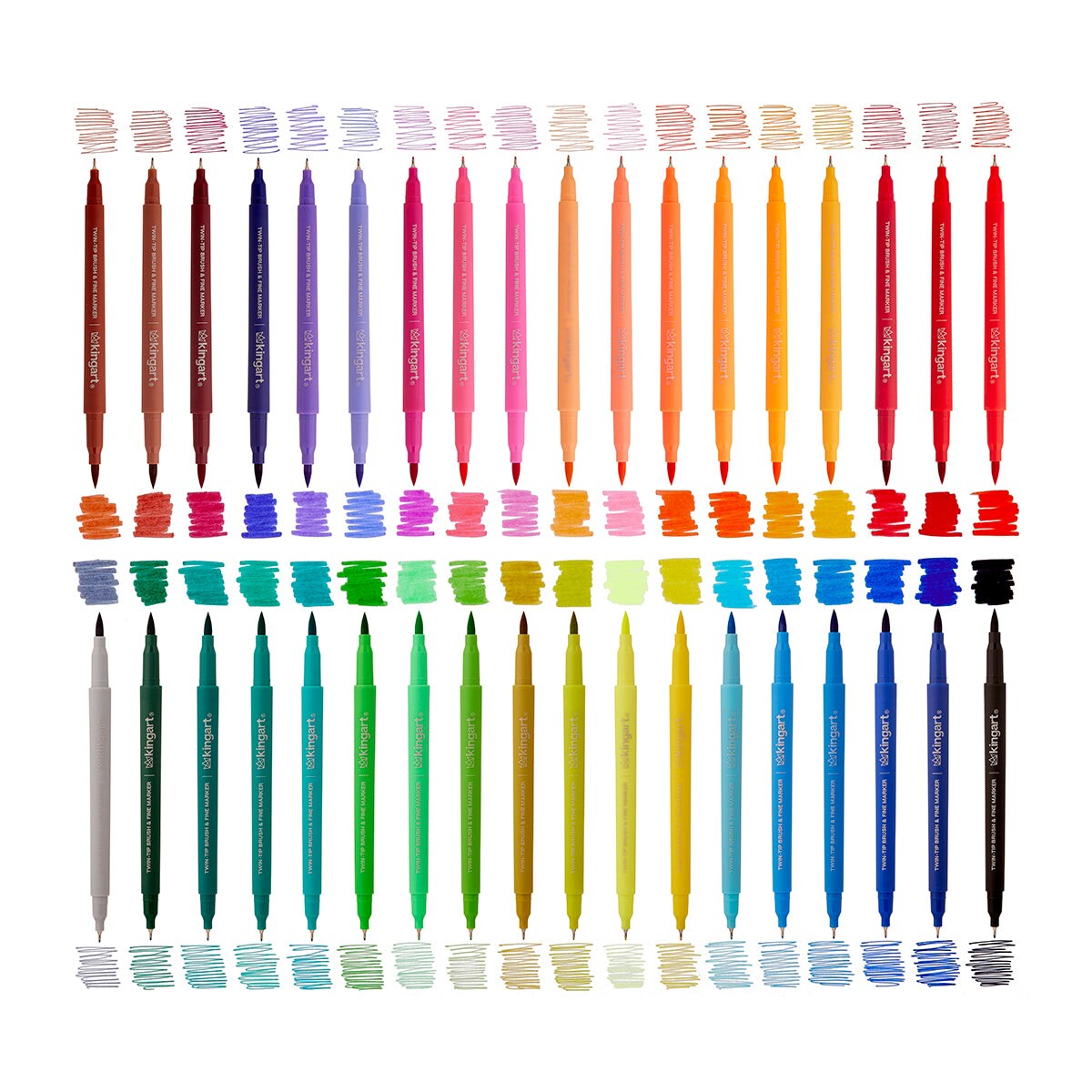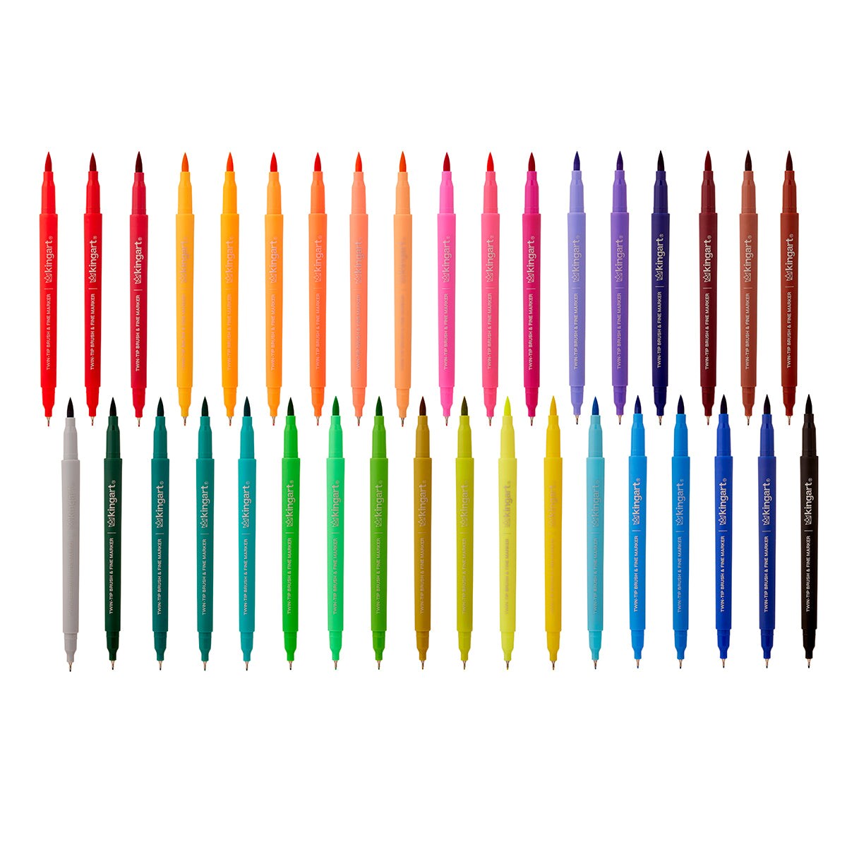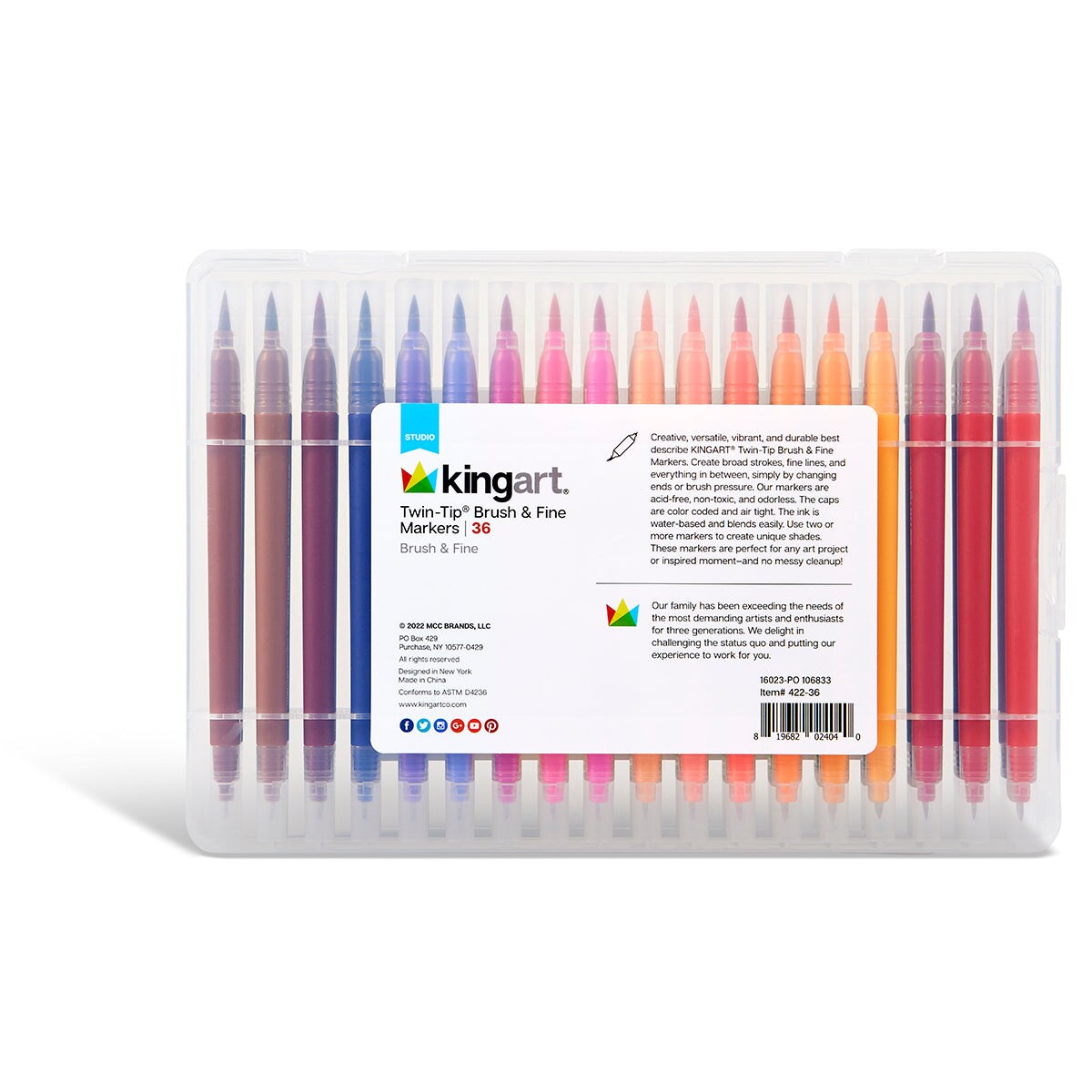 KINGART® Twin-Tip™ Brush & Ultra Fine Markers, Carrying Case, Set of 36 Unique Bright Colors