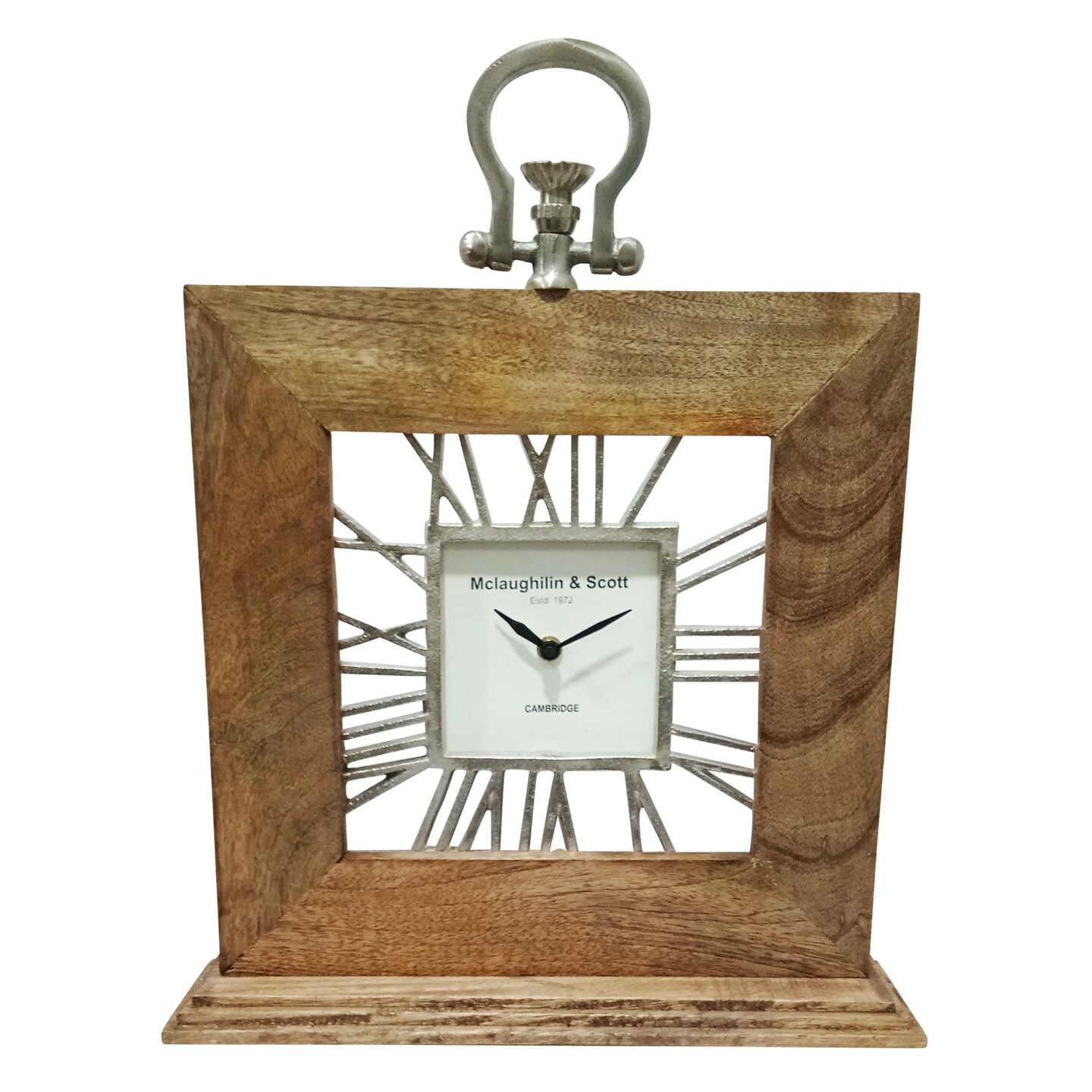 Kingston Living 16" White and Silver Wooden Mango Vintage Square Table Clock