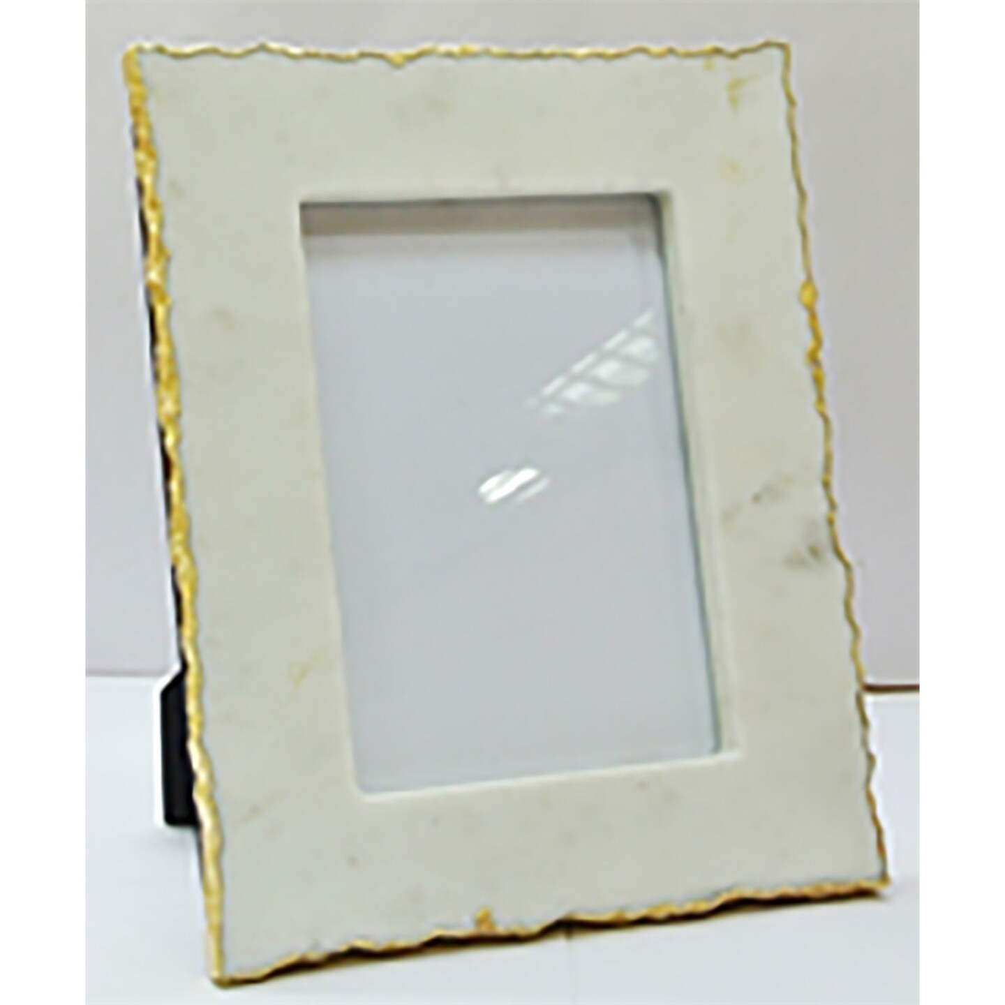 Kingston Living 9" White and Gold Jagged Rectangular Marble Photo Frame