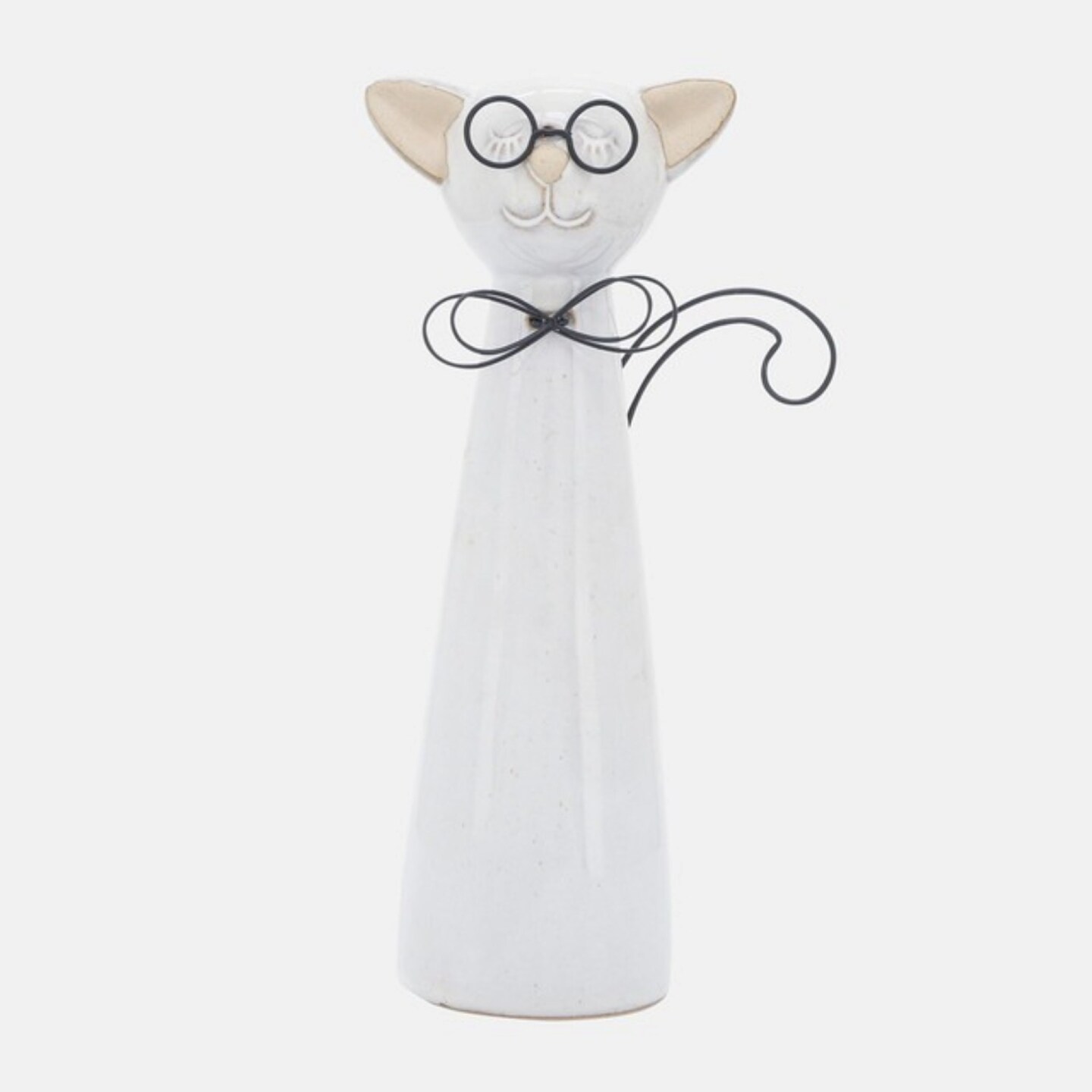 Kingston Living Cat with Glasses Tabletop Figurine - 11" - White and Beige