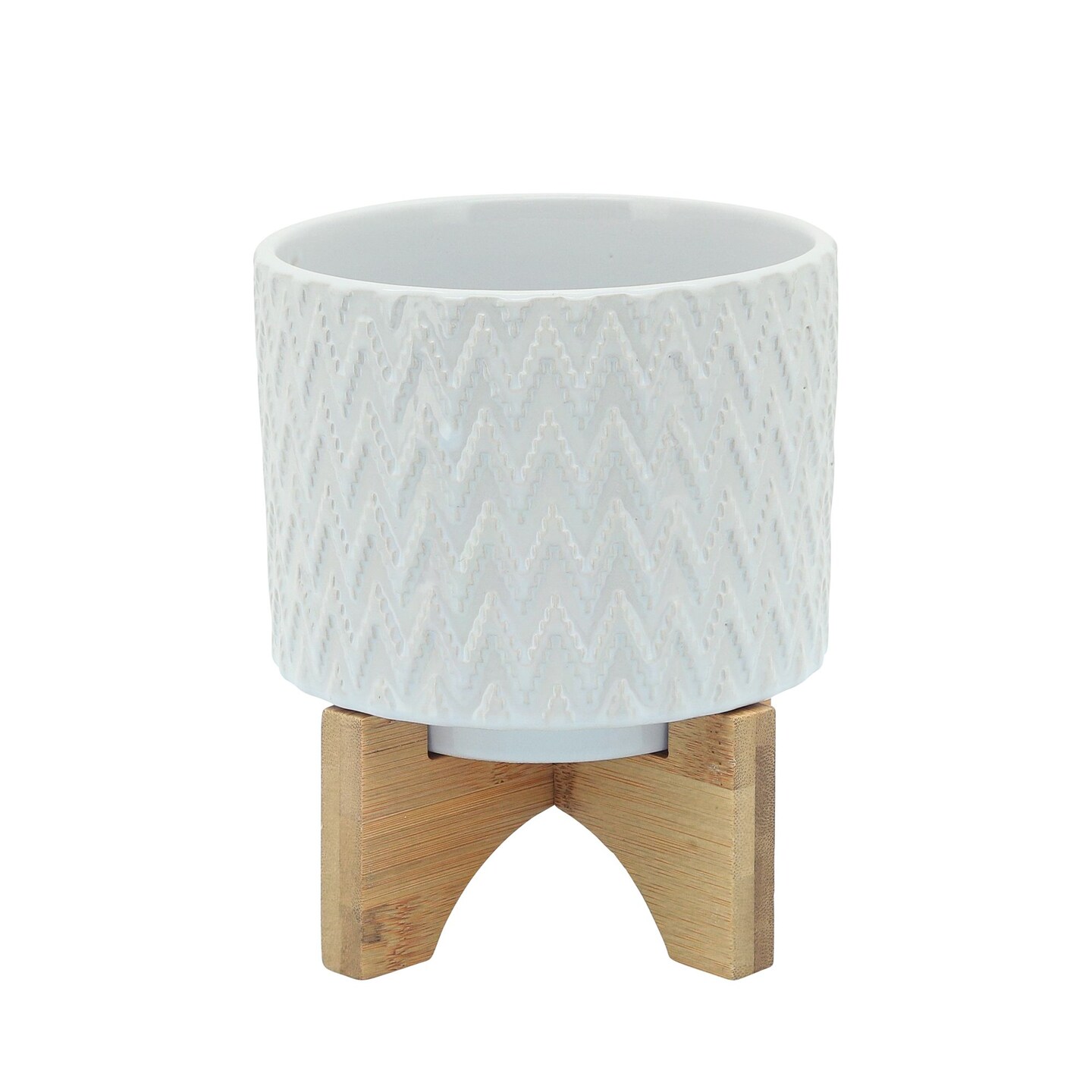 Kingston Living Chevron Ceramic Planter with Stand - 6" - White and Brown