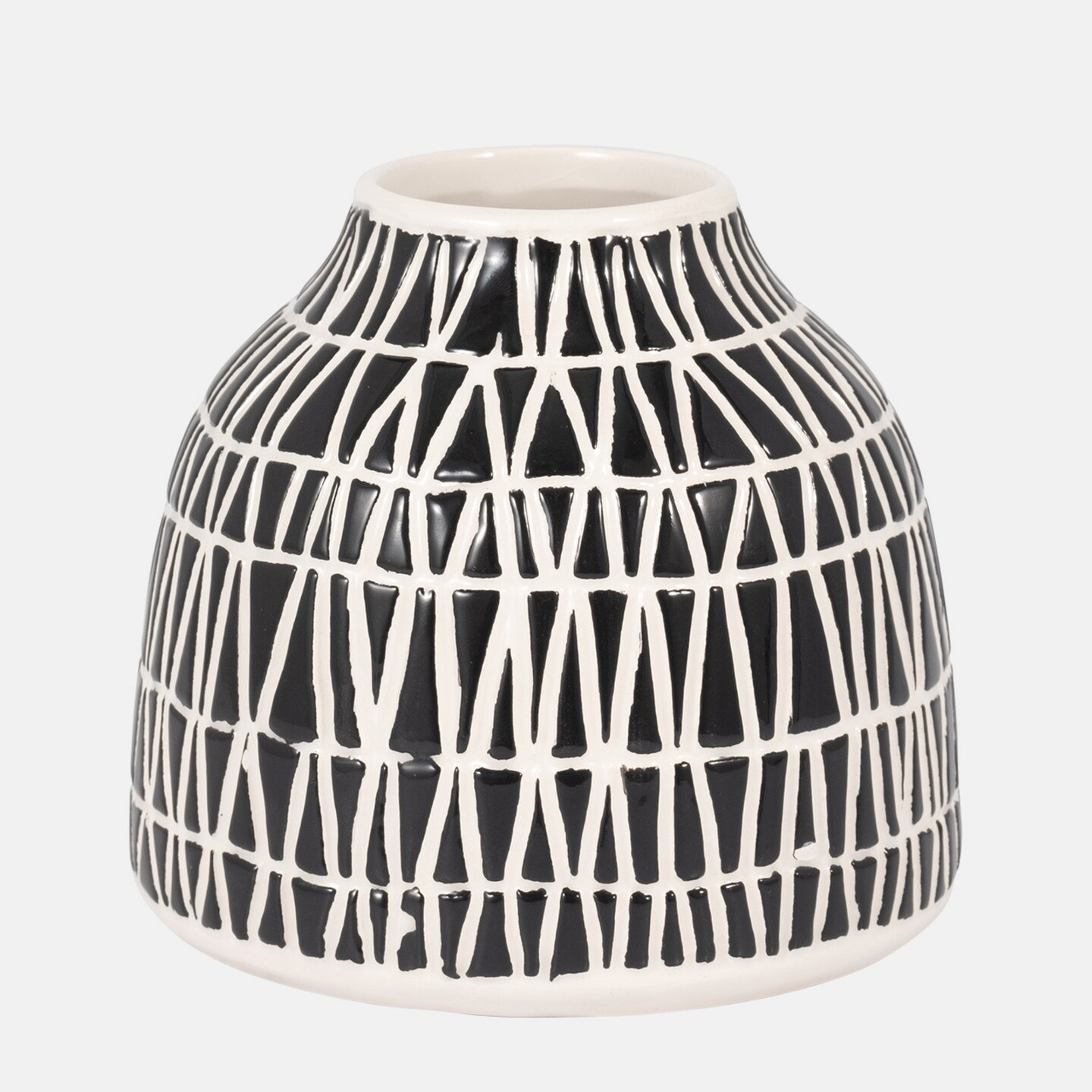 Kingston Living Tribal Ceramic Vase - 5" - Black and White