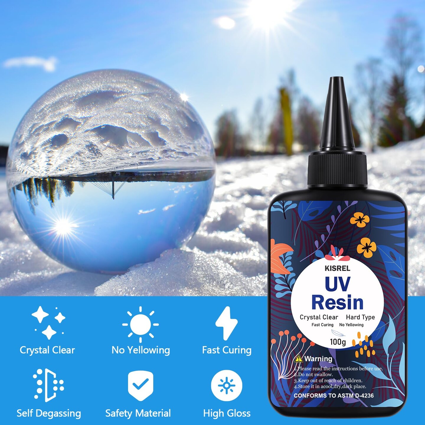KISREL UV Resin 100g - Upgraded UV Resin Kit, Hard Type Crystal Clear Ultraviolet Curing UV Epoxy Resin for Craft Jewelry Making