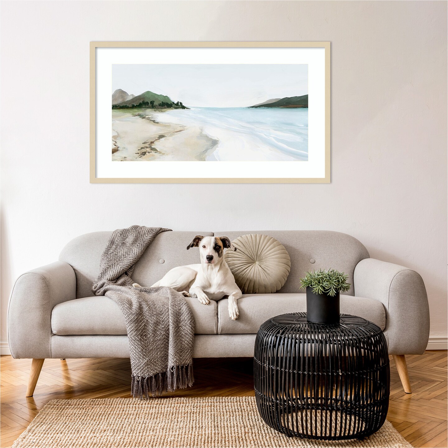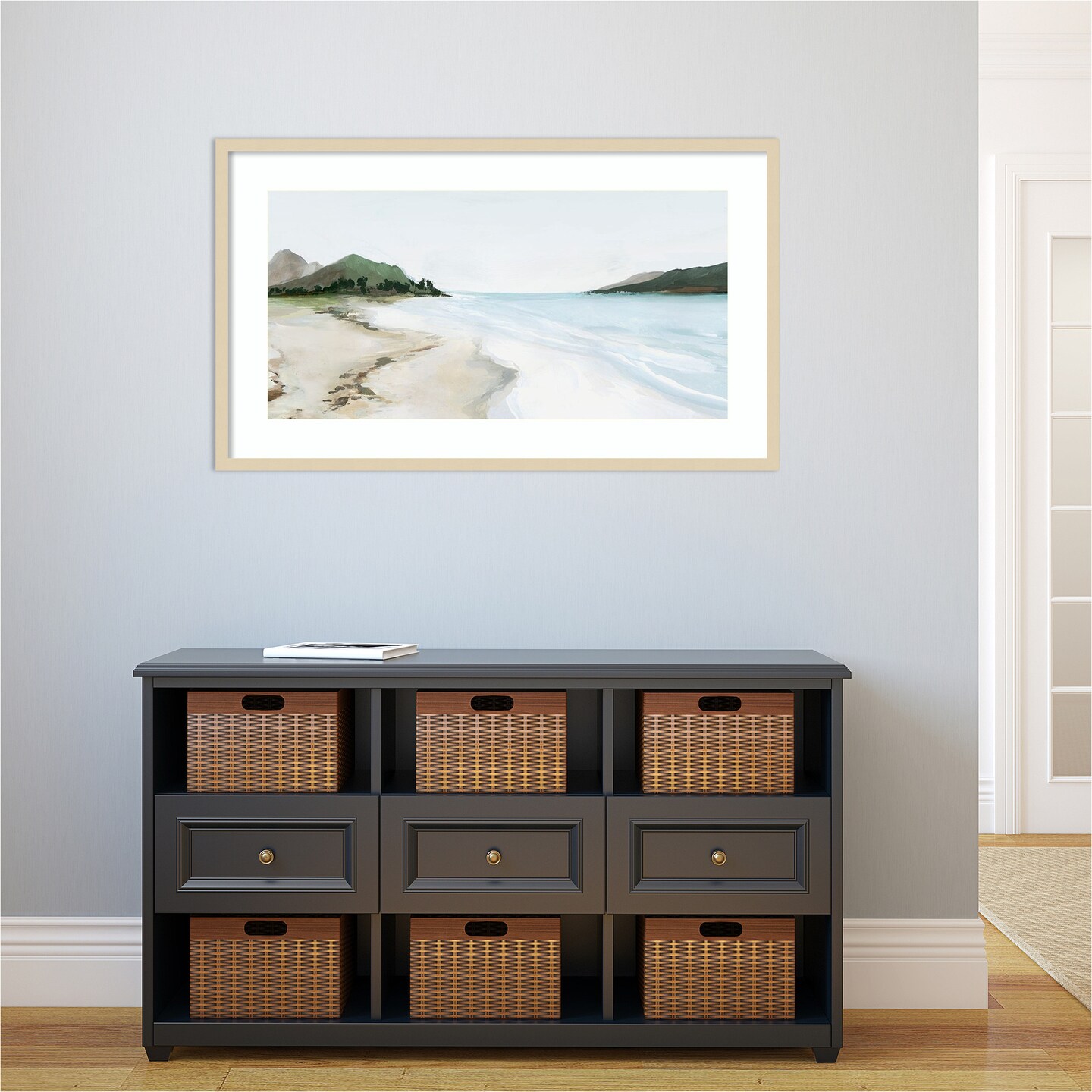 Kiss from a Wave (Beach) by Isabelle Z Wood Framed Wall Art Print 41 in. W x 24 in. H