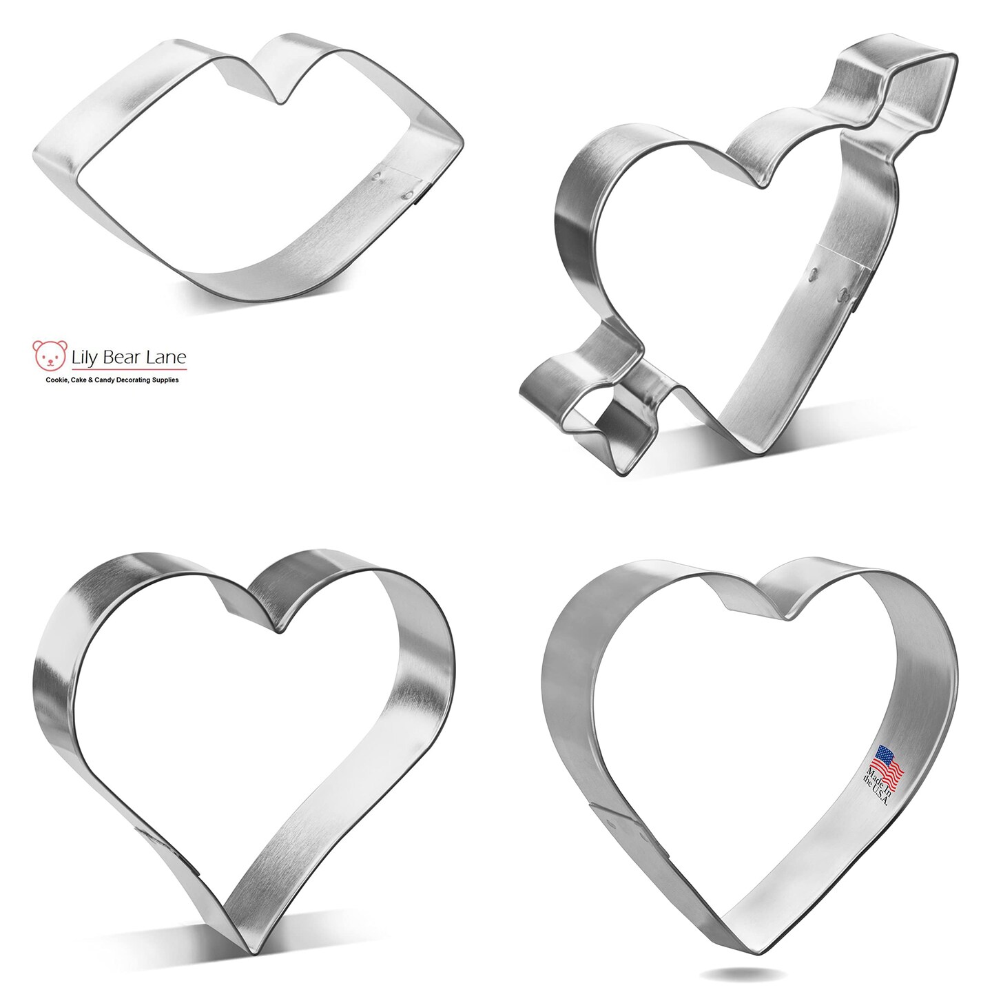 Kiss From The Heart Cookie Cutters 4 Pc Set HS0470- CookieCutter.Com - USA Tin Plated Steel