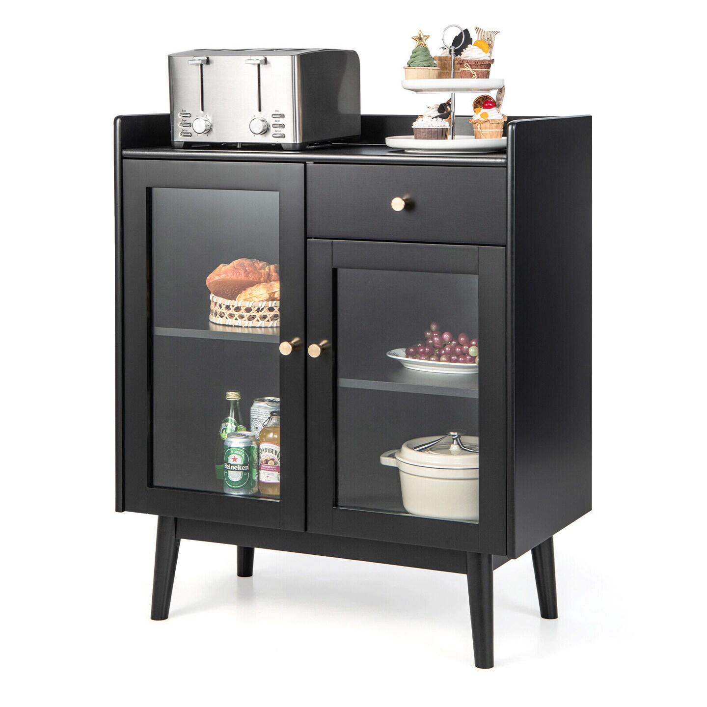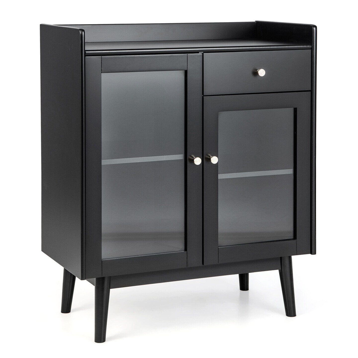 Kitchen Buffet Sideboard with 2 Tempered Glass Doors and Drawer-Black