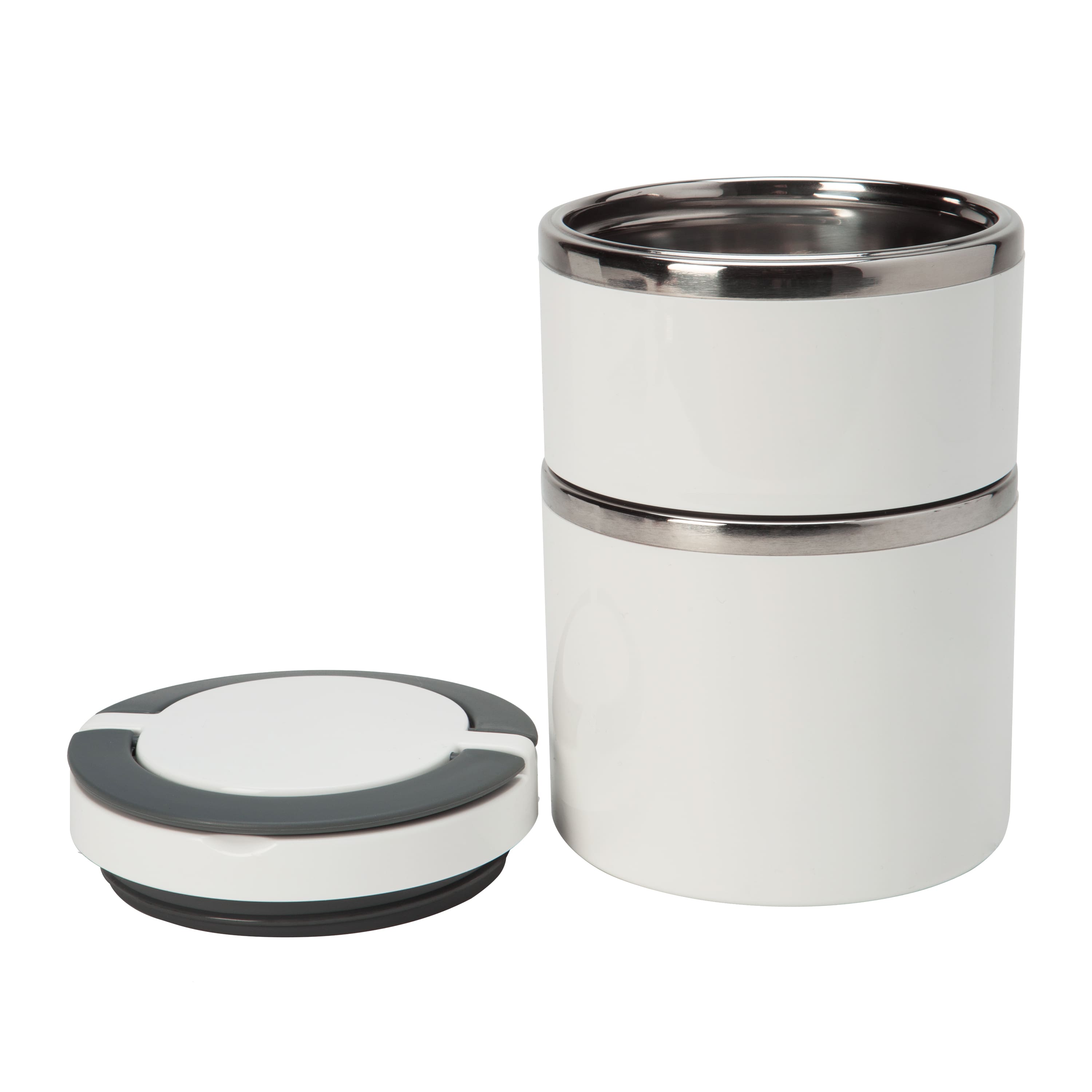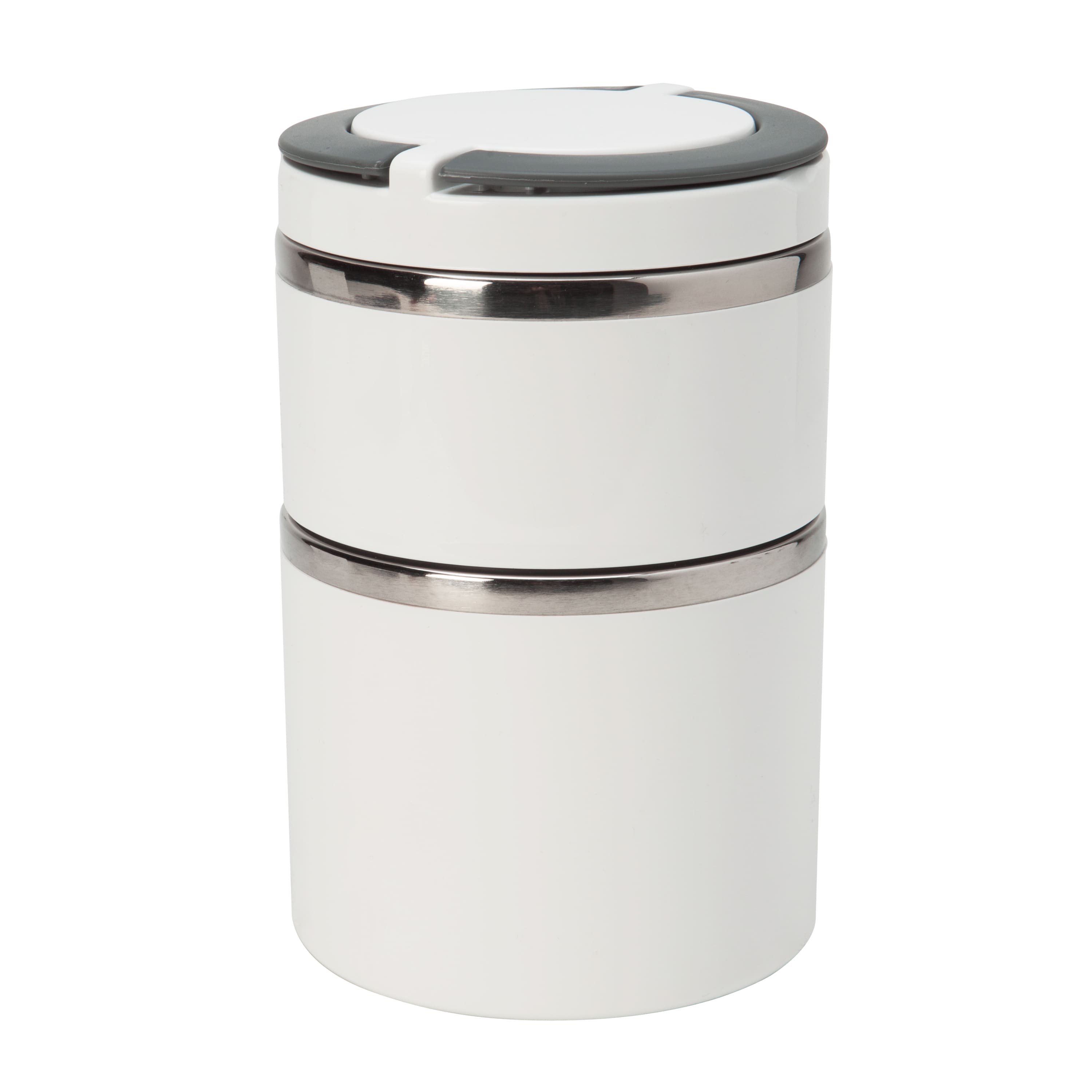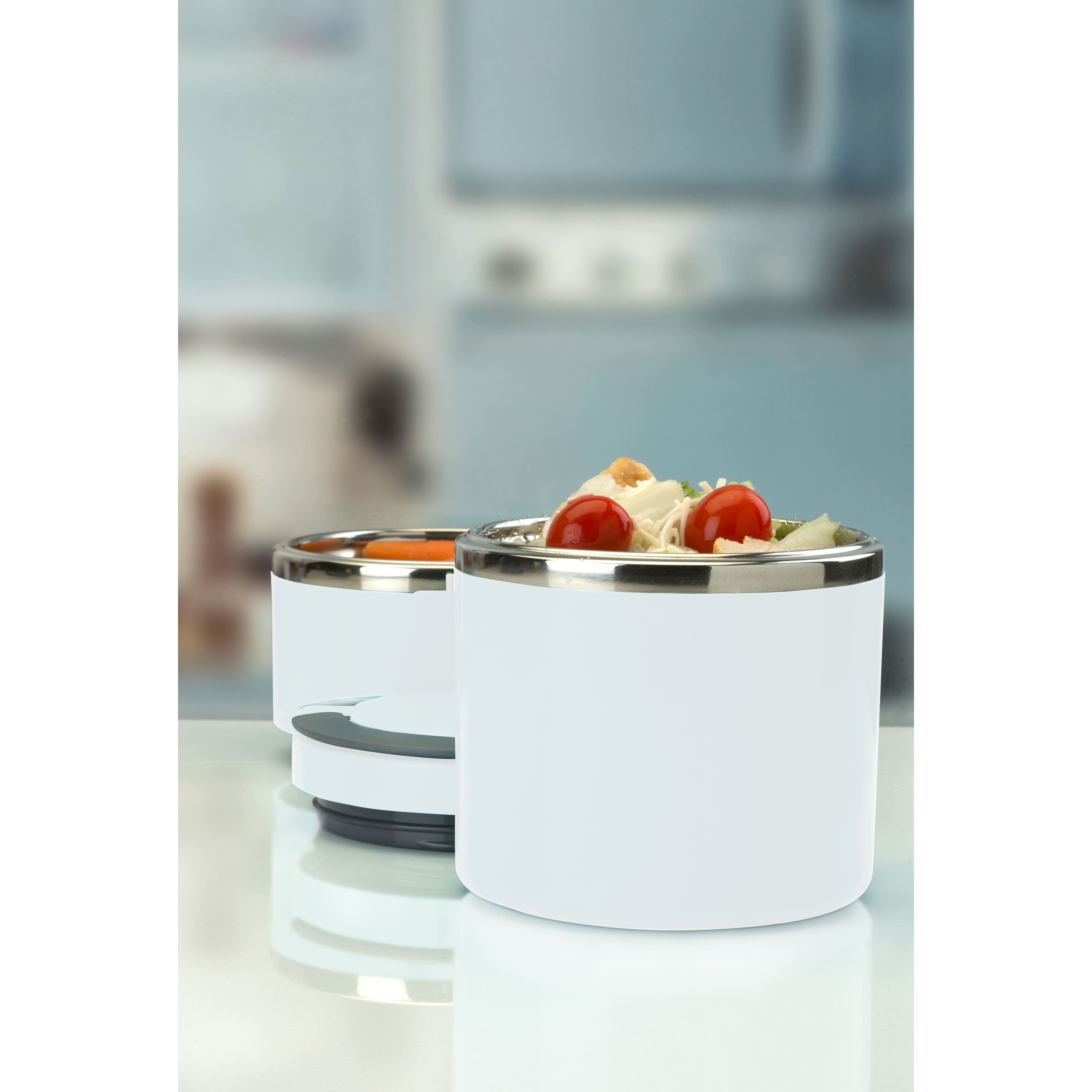 Kitchen Details 2-Tier Round Twist White Insulated Stainless Steel Lunch Box