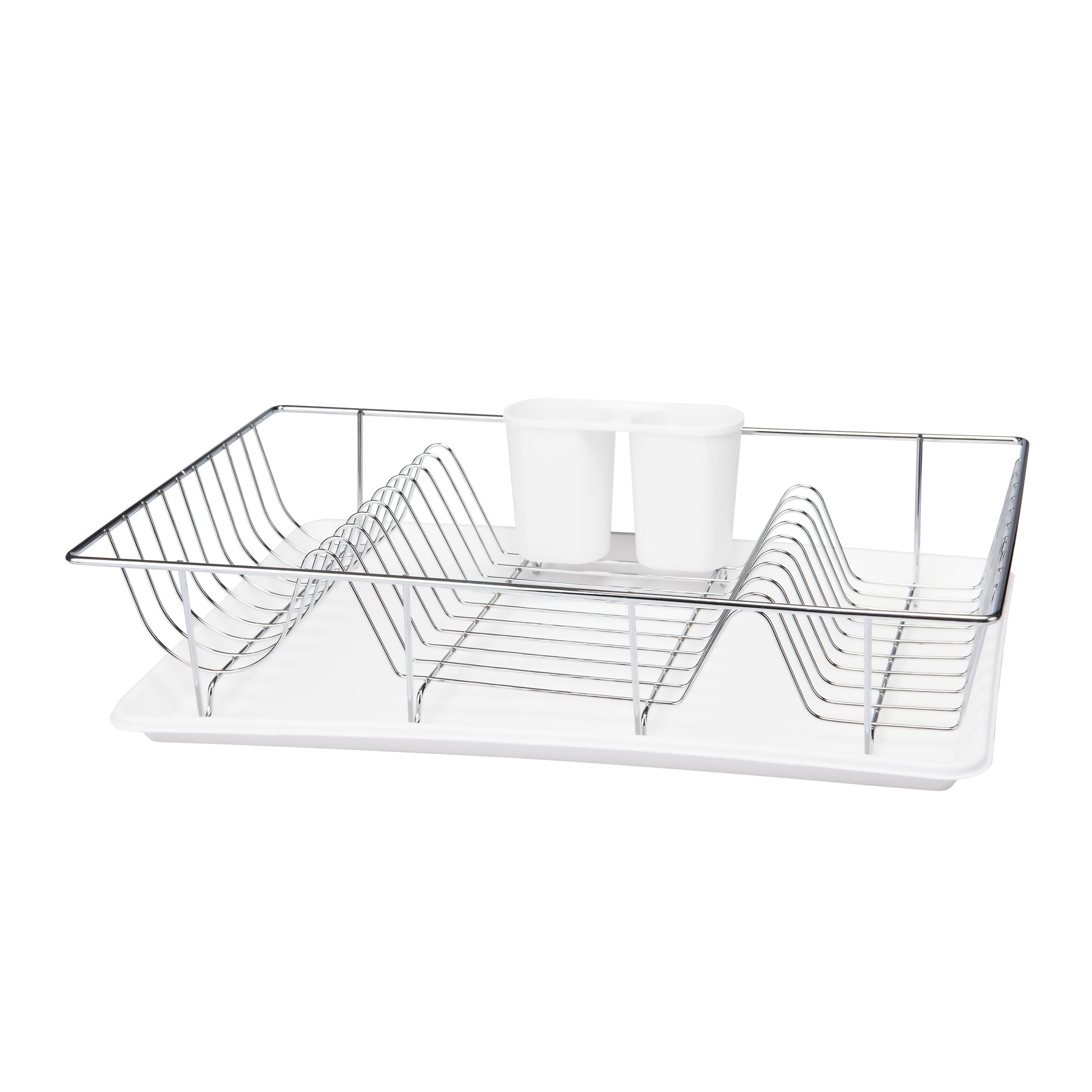 Kitchen Details White 3-Piece Chrome Dish Rack with Tray