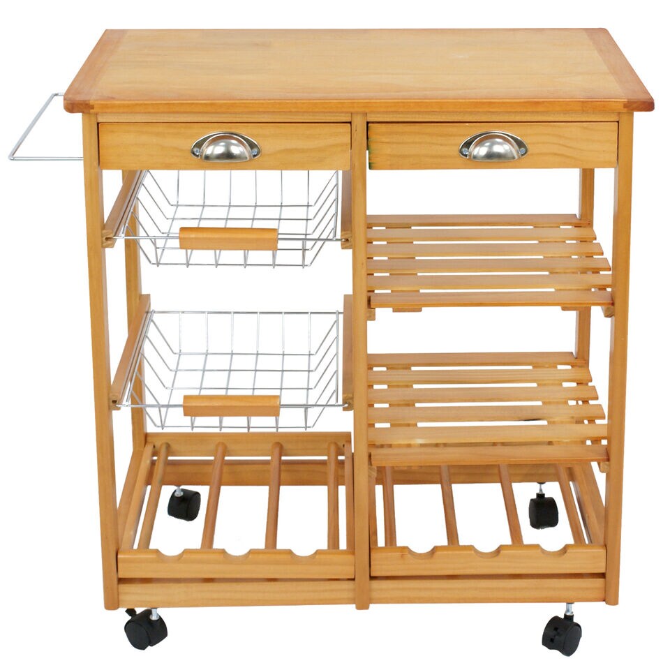 Kitchen Island Rolling Wood Trolley Cart Dining Storage Drawers.