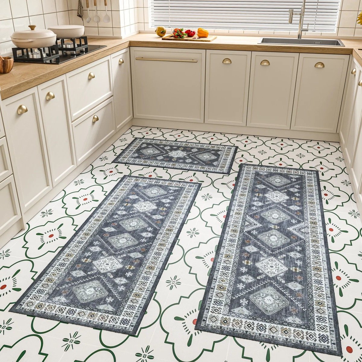 Kitchen Rug Sets 3 Piece with Runner Non Slip Kitchen Rugs and Mats Washable Kitchen Mats for Floor Thick Kitchen Floor Mat Carpet Runner Rugs for Hallway Laundry Holiday Decor
