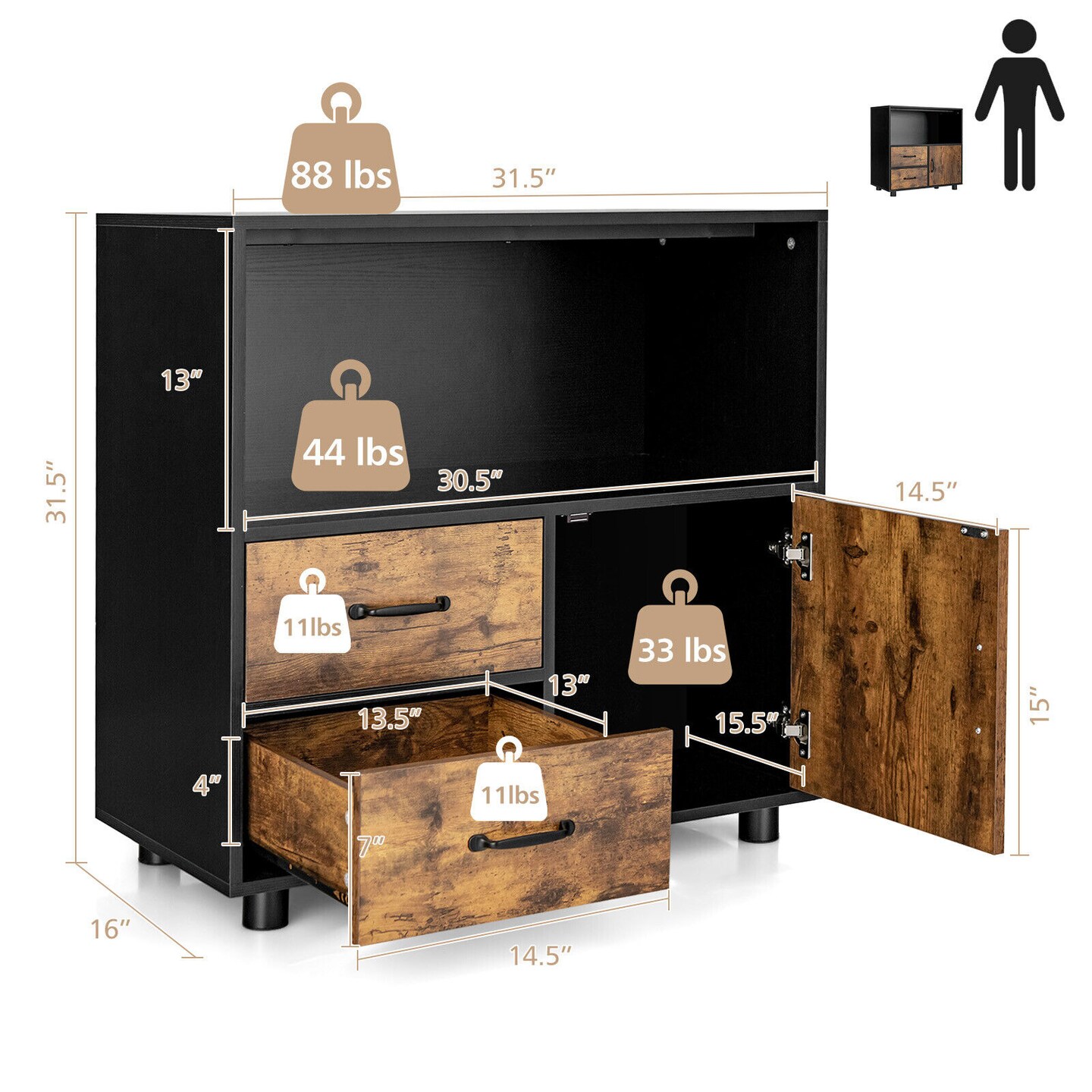 Kitchen Storage Buffet Sideboard with Wine Rack and Glass Holder-Black