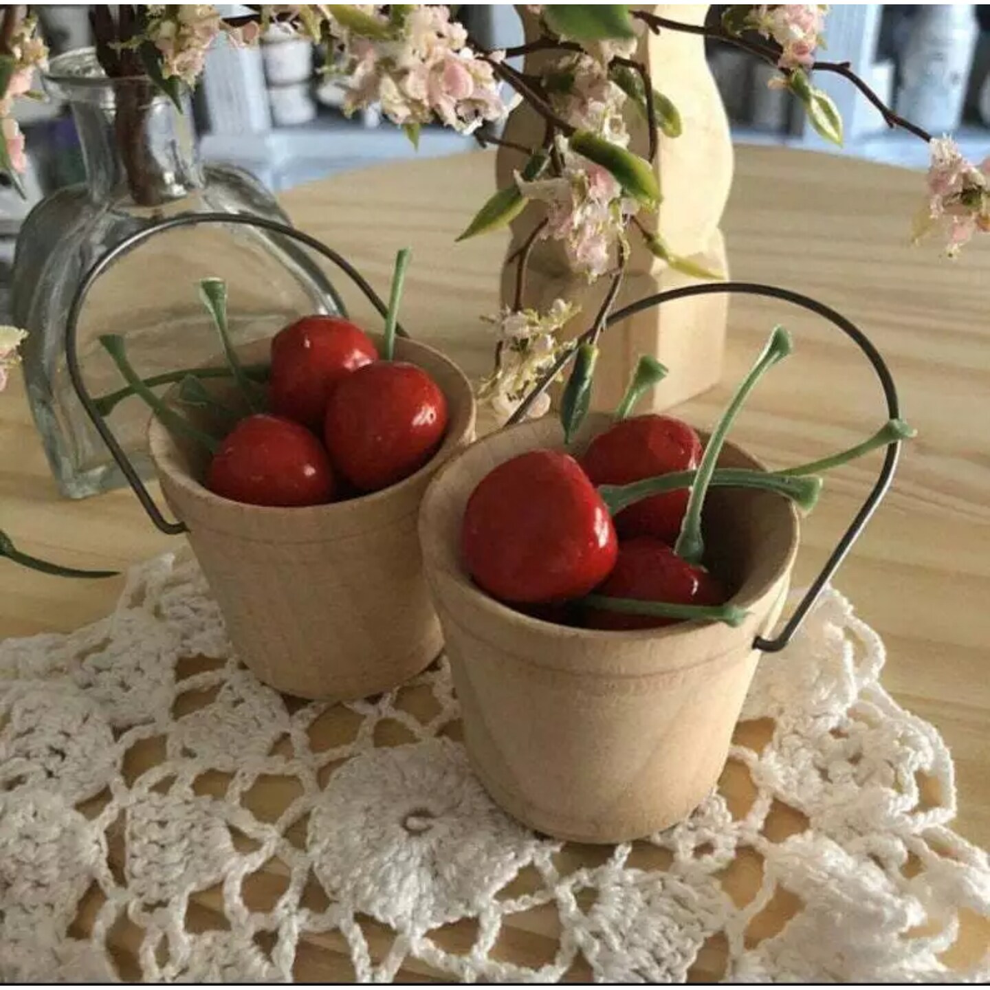 Kitcheniva 20 Pcs Miniature Tall Natural Wooden Bucket Wire Handle Pail Kids Toy Crafts