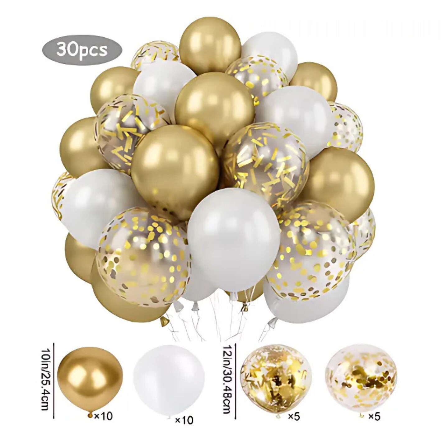 Kitcheniva 30-Pack White and Gold Party Balloon Set – Birthday, Wedding, Baby Shower, Graduation, Anniversary Decorations