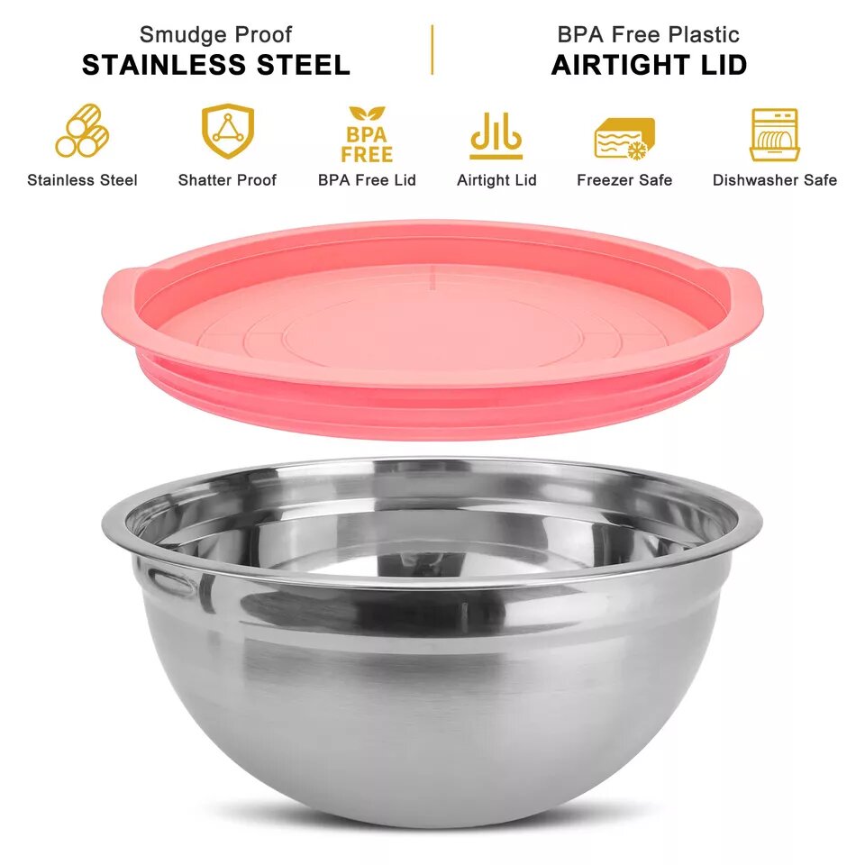 Kitcheniva 5 Pcs Stainless Steel Mixing Bowl Set with Lids