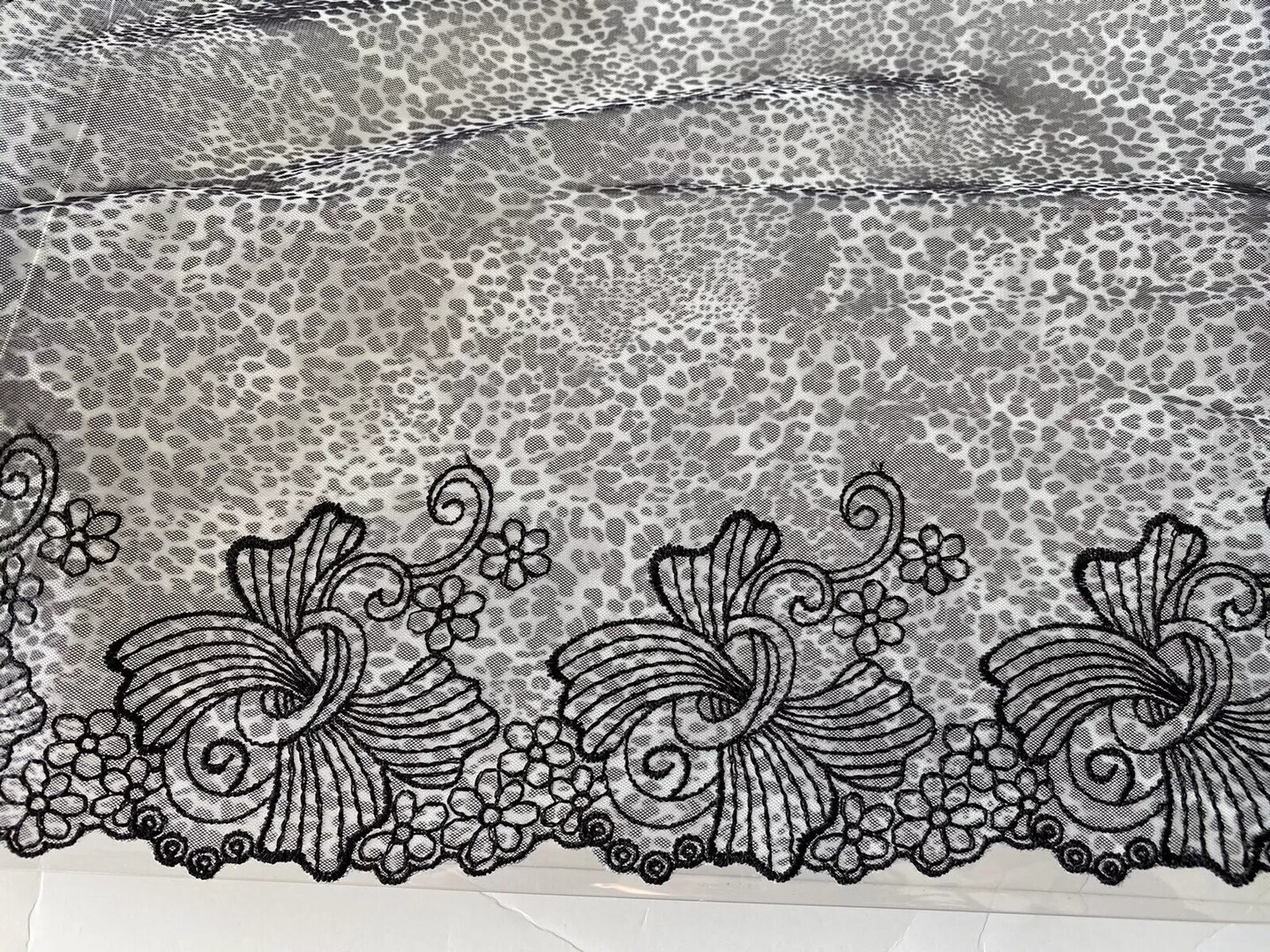 Kitcheniva 9" Wide Black & Grey Leopard-Print Embroidered Lace