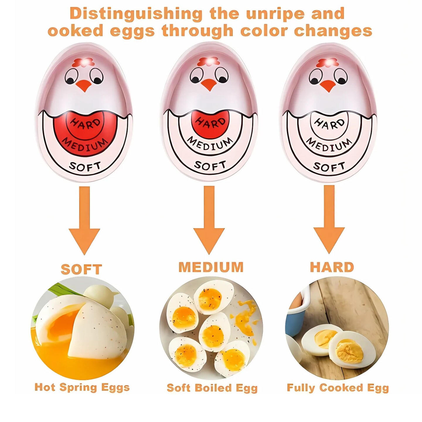 Kitcheniva Egg Timer for Boiling Eggs - Color Changing Egg Doneness Indicator for Perfect Soft, Medium & Hard Boiled Eggs