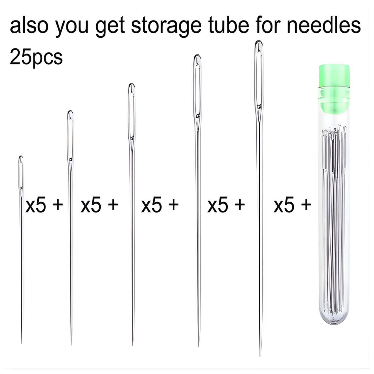 Kitcheniva Large Eye Sewing Needles with Storage Tube 25 Pcs