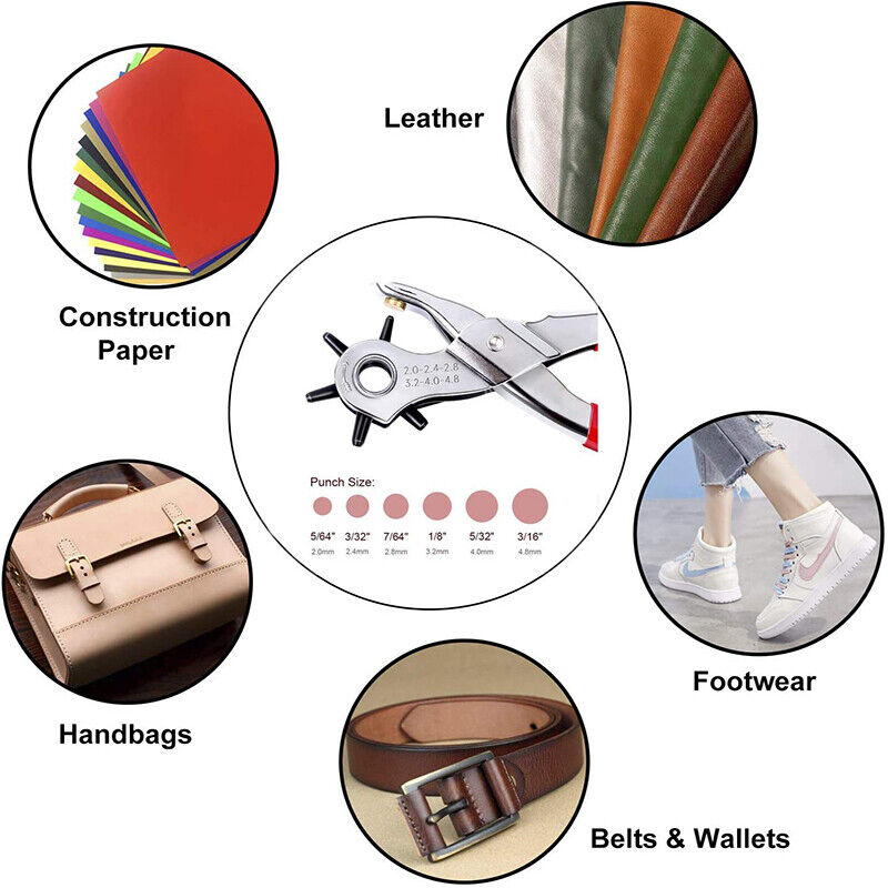 Kitcheniva Leather Hole Punch Hand Pliers Belt Holes 6 Sized Puncher 9"