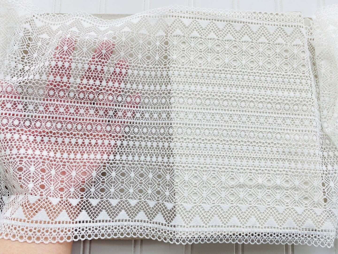 Kitcheniva Stretch Bright White Eyelet Stripe Lace Trim Sewing Crafts