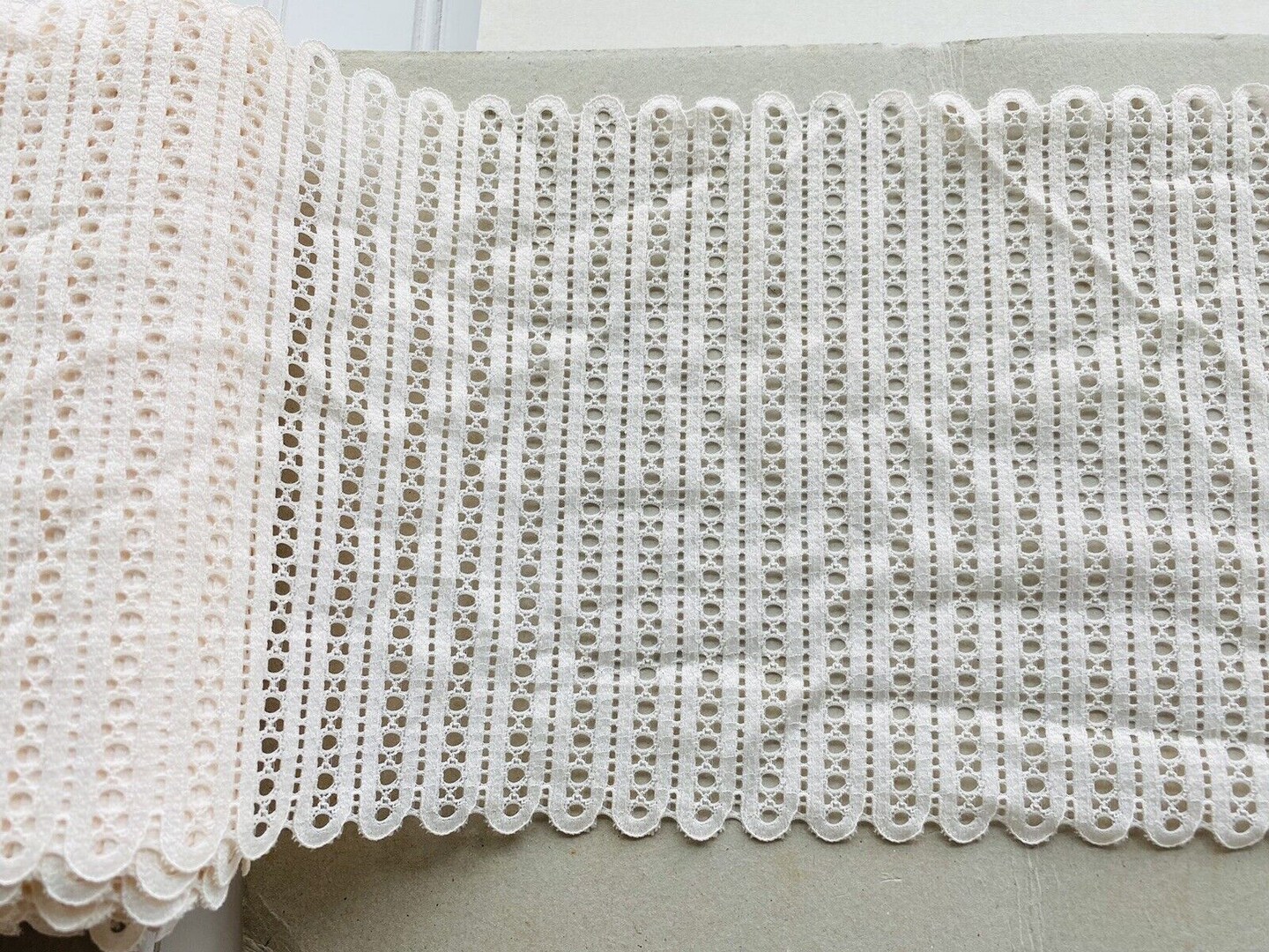 Kitcheniva Stretch Light Pink Eyelet Vertical Striped Lace Trim Sewing