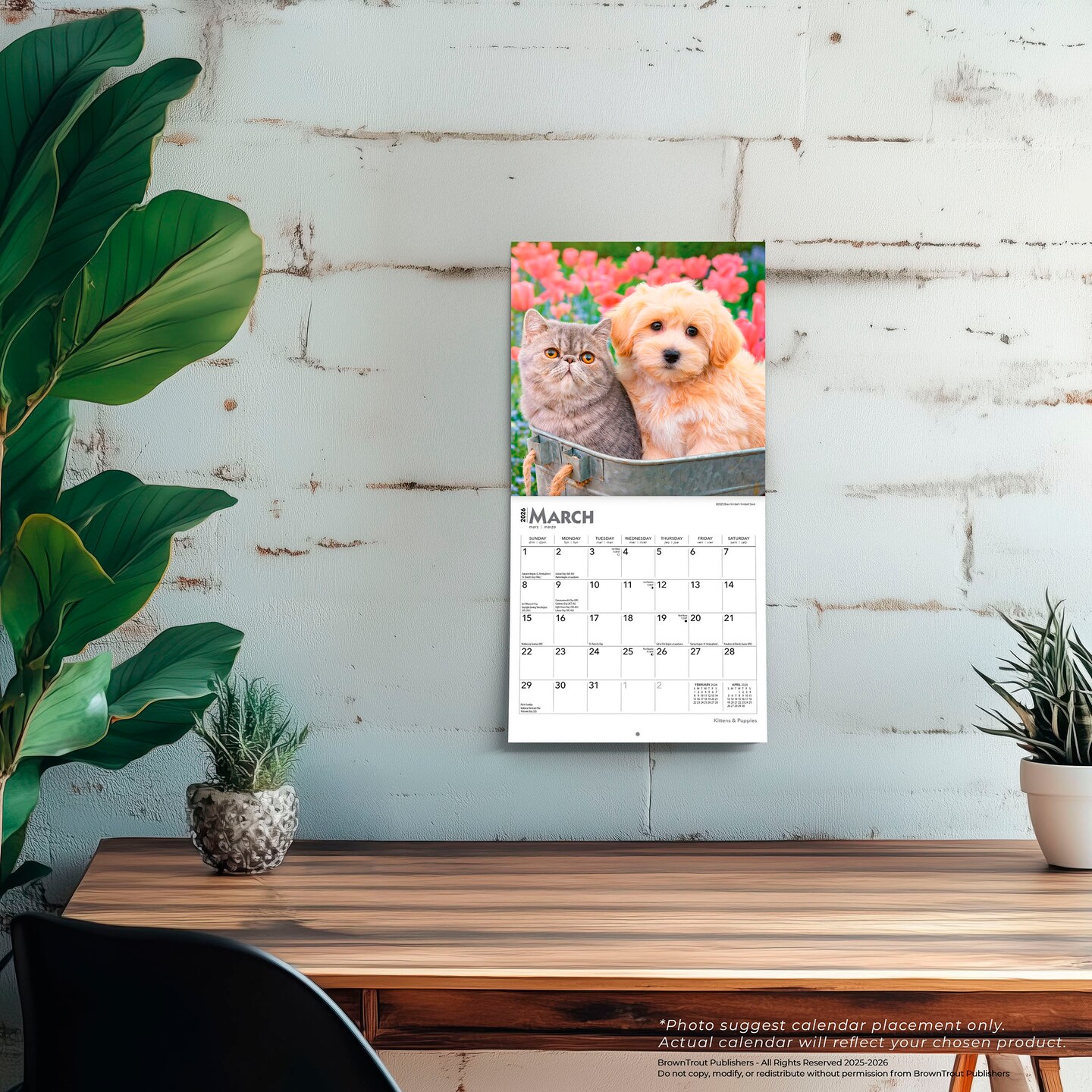 Kittens & Puppies | 2026 7 x 14 Inch (Hanging) Monthly Mini Wall Calendar