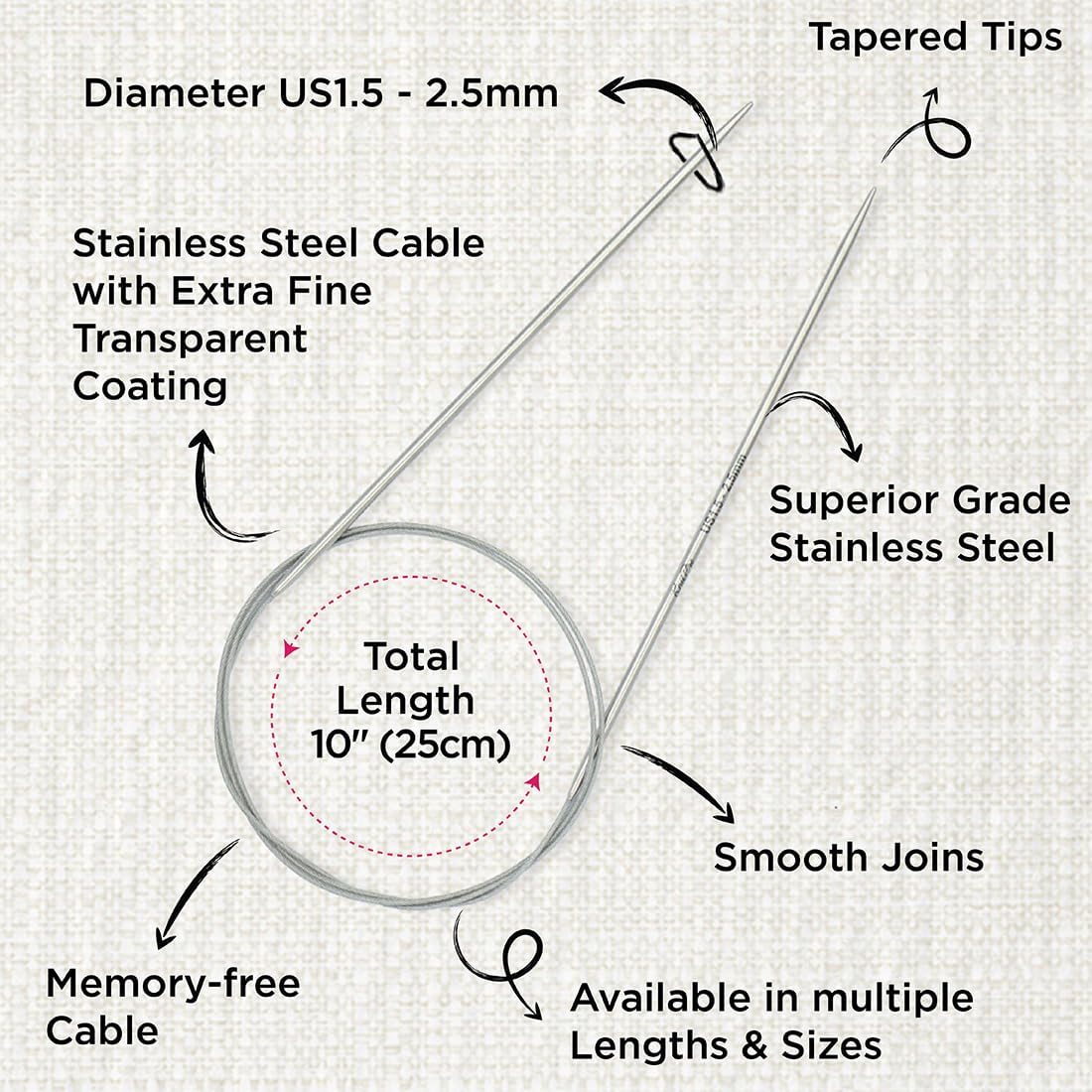 KnitPro Stelo Fixed Circular Knitting Needles 10" (25cm)