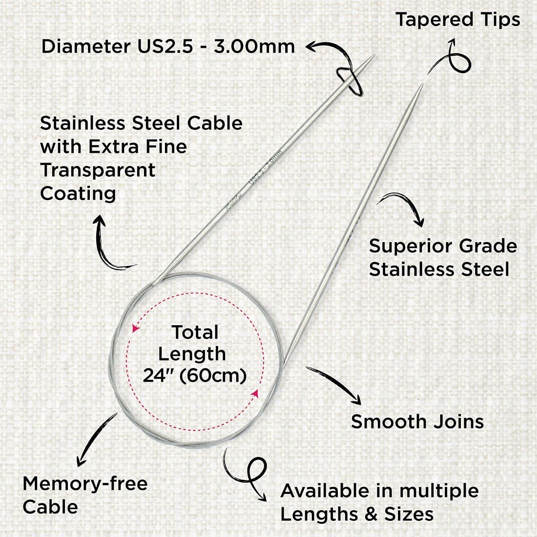 KnitPro Stelo Lace Fixed Circular Knitting Needles 24" Size 0 - 17