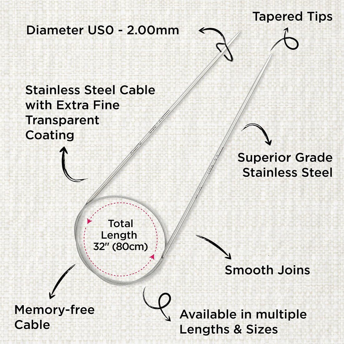 KnitPro Stelo Lace Fixed Circular Knitting Needles 32" Size 0 - 17