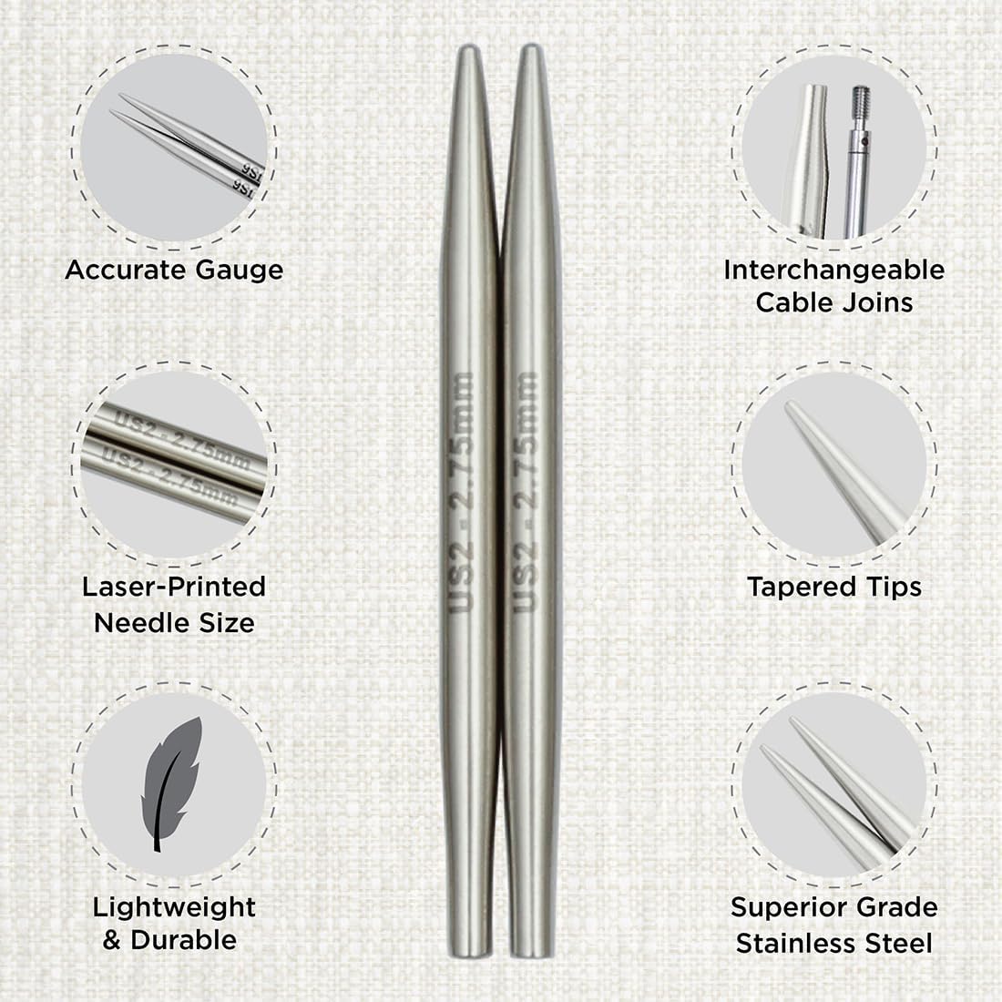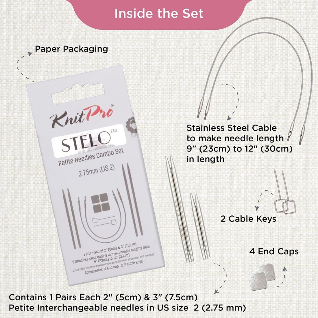 KnitPro Stelo Petite Interchangeable Knitting Needle Combo Set 2" (5cm) & 3" (7.5cm) US 2 (2.75mm)