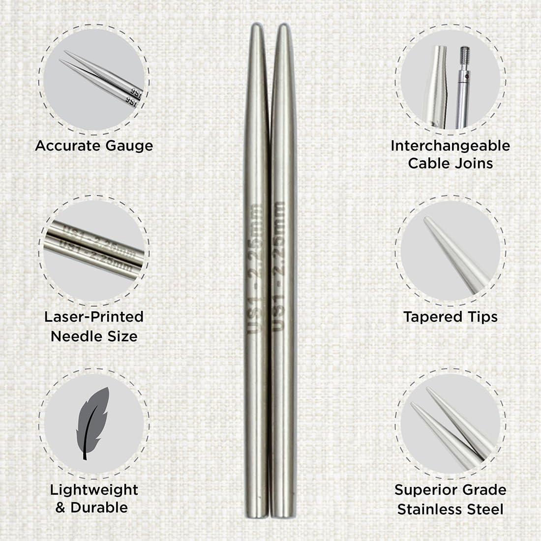 KnitPro Stelo Petite Interchangeable Knitting Needle Combo Set 2" (5cm) & 3" Size 1 (2.25mm)