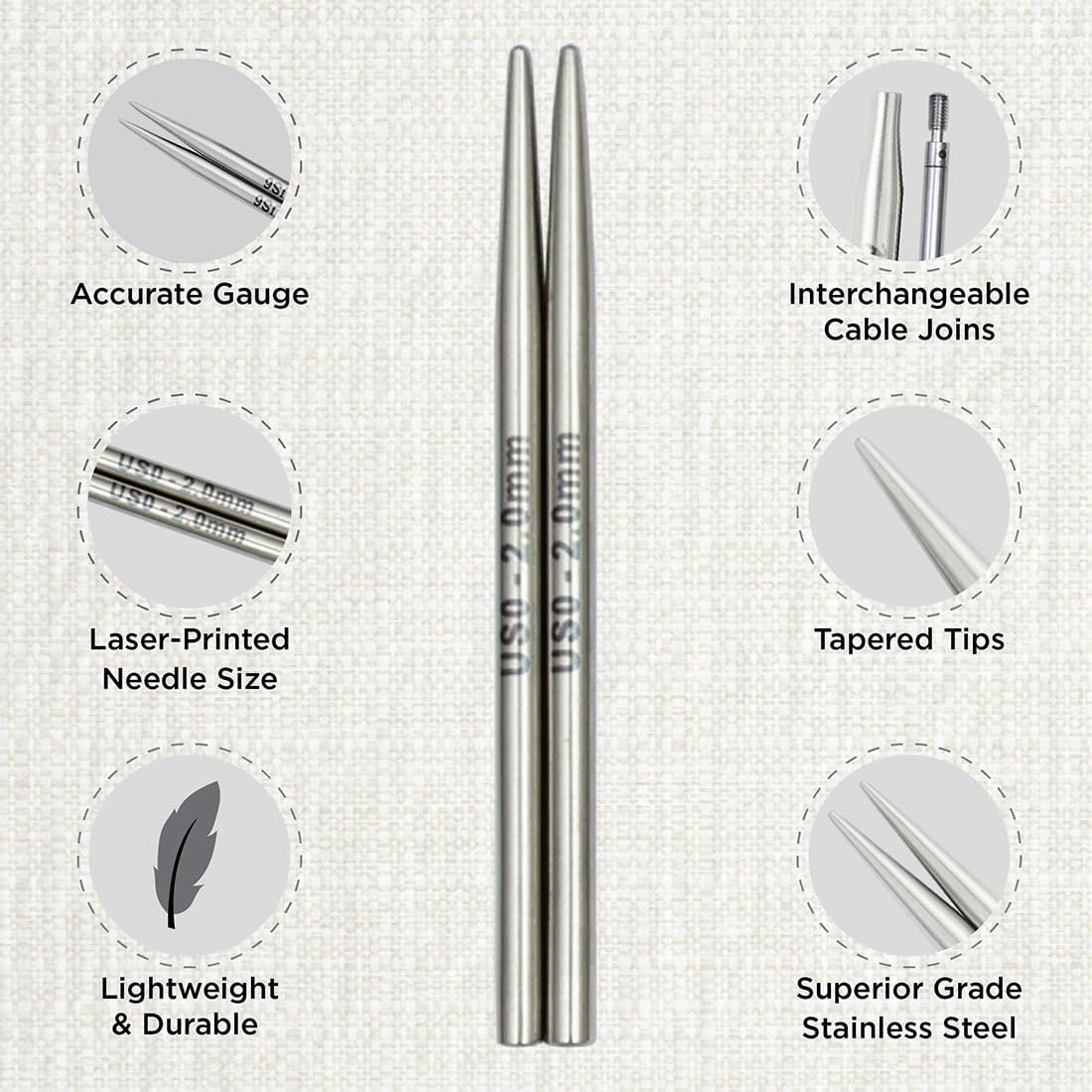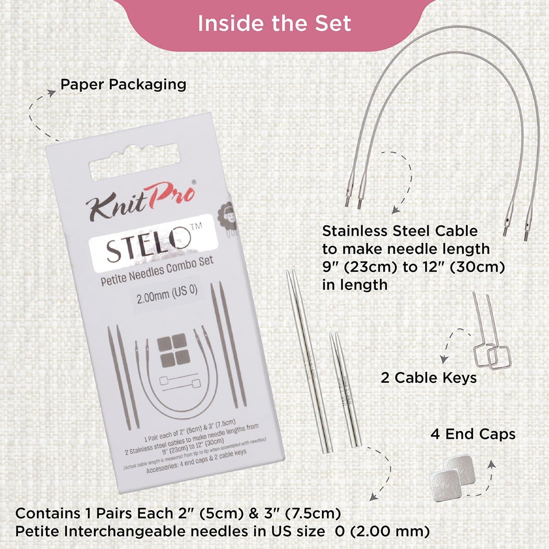 KnitPro Stelo Petite Interchangeable Needle Knitting Combo Set 2" (5cm) & 3" Size 0 (2mm)