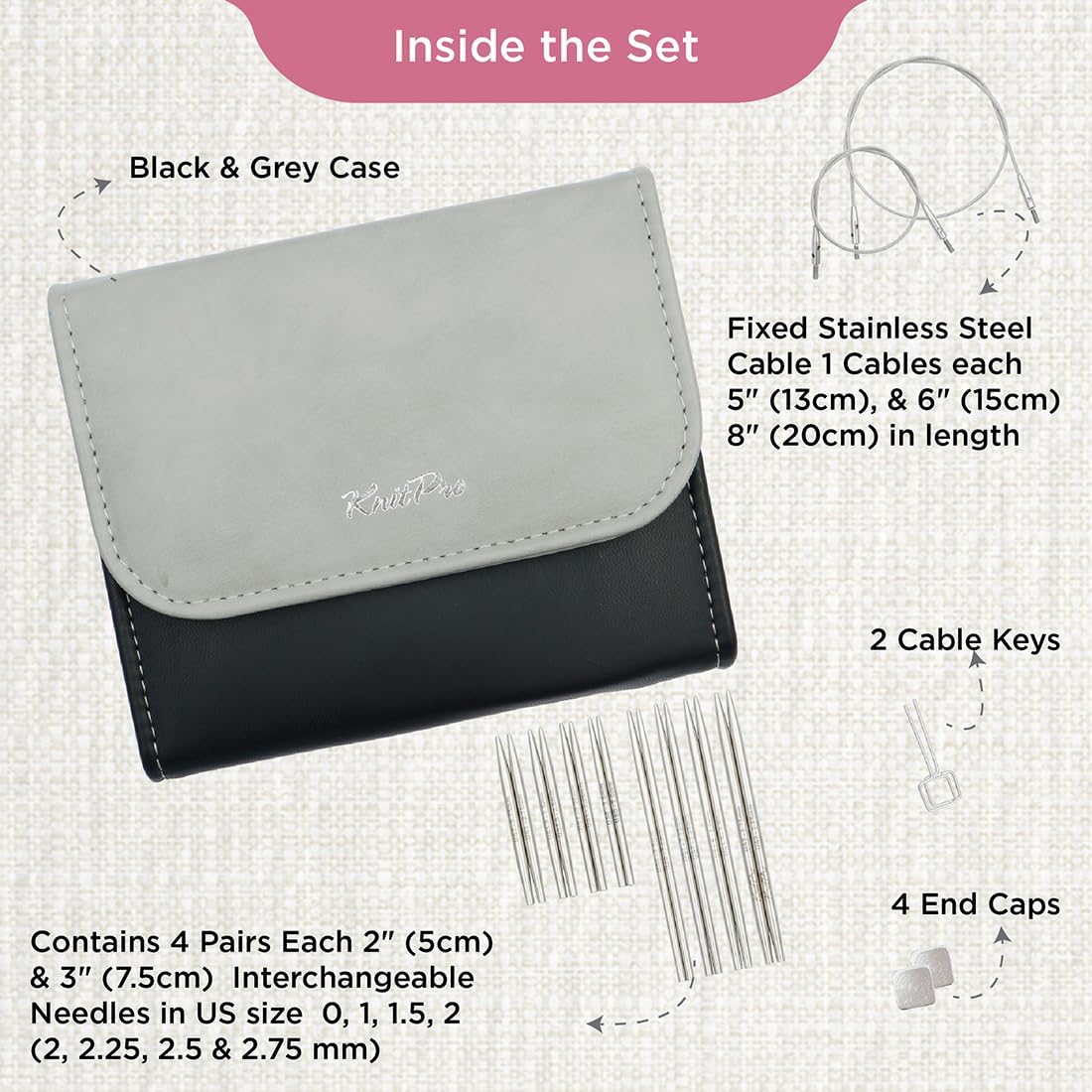 KnitPro Stelo Petite Mini Interchangeable Knitting Needle Set 2" (5cm) & 3" (7.5cm)