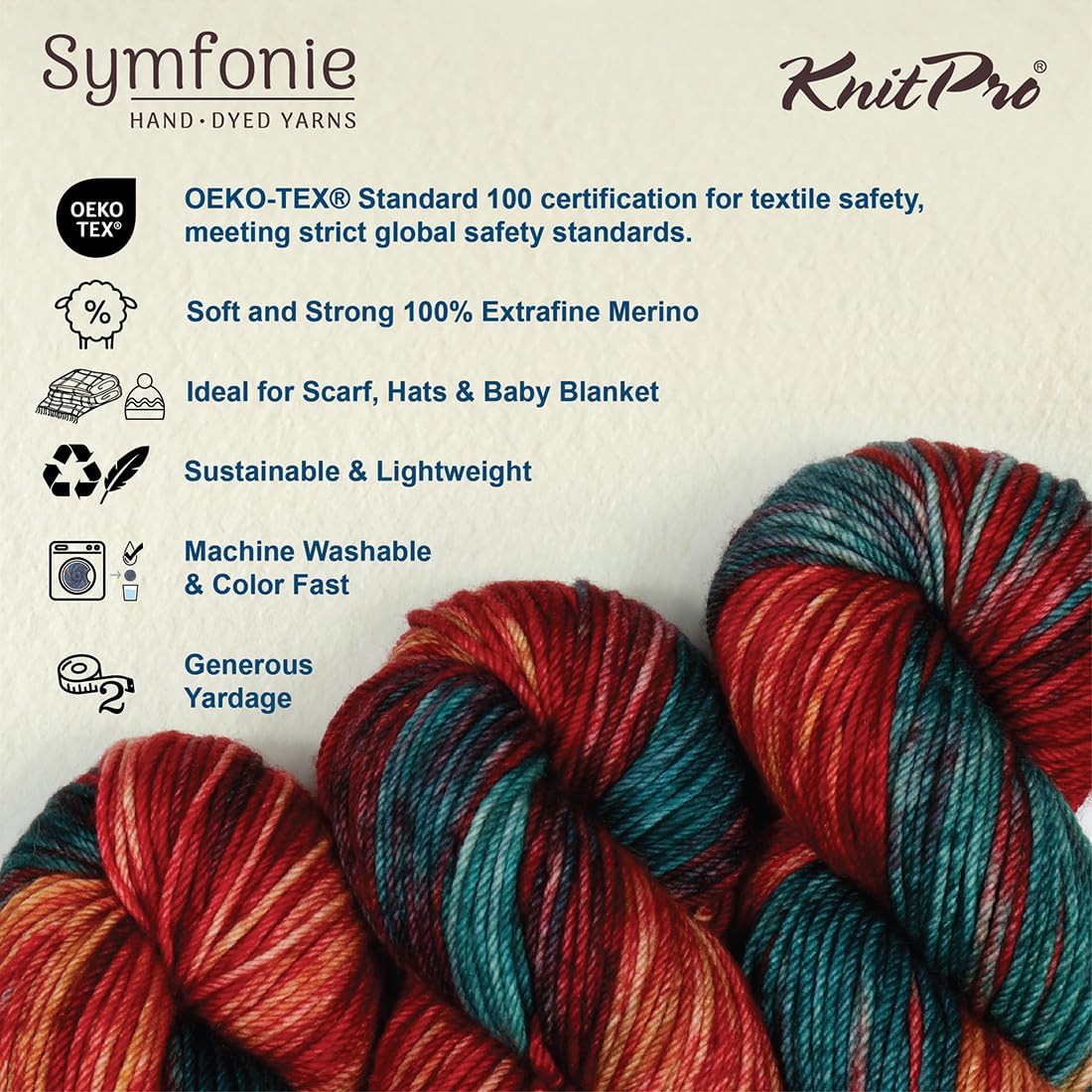 KnitPro Symfonie Premium Hand Dyed Yarn Merino Wool| Bella Variegated Colors