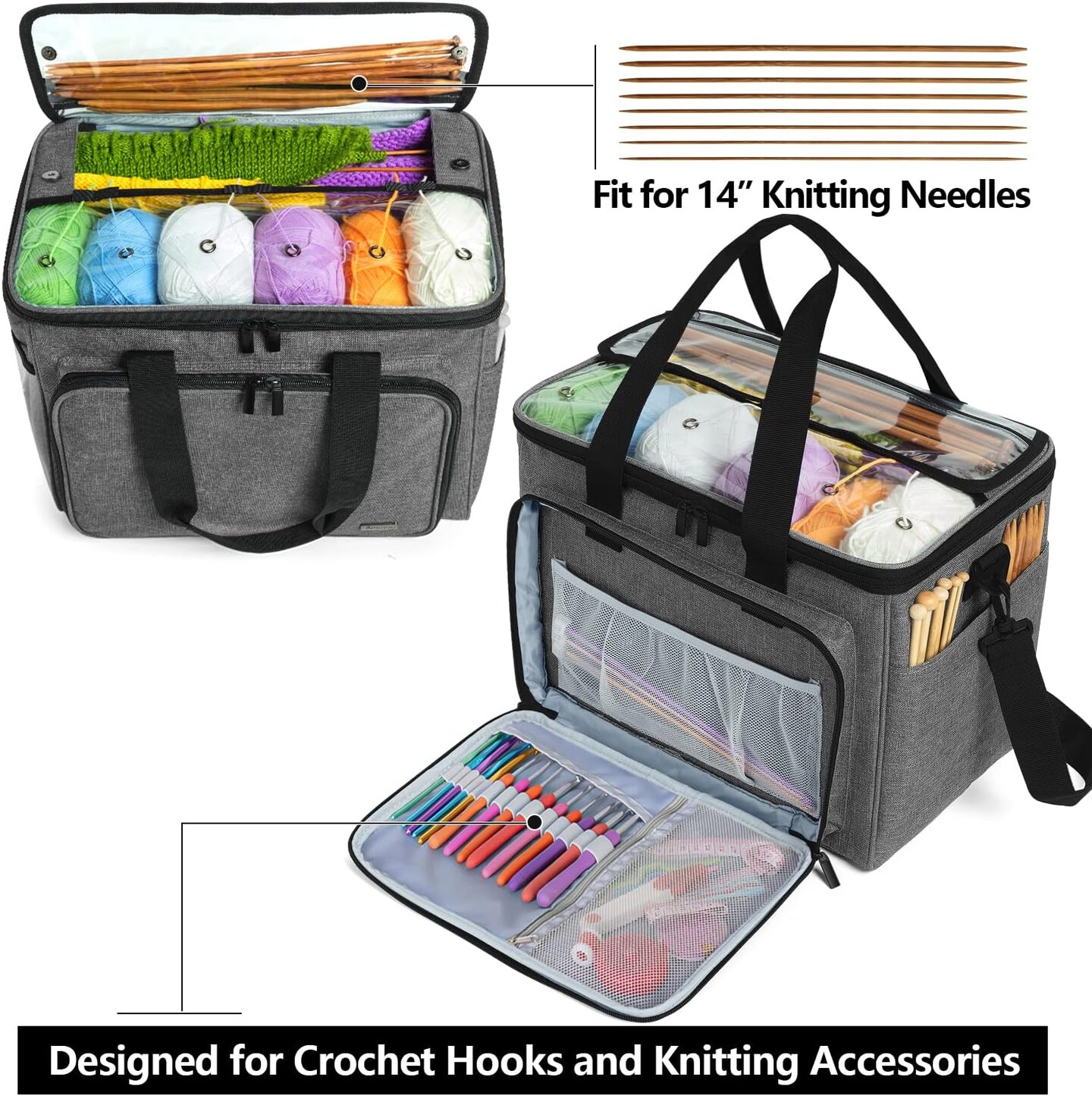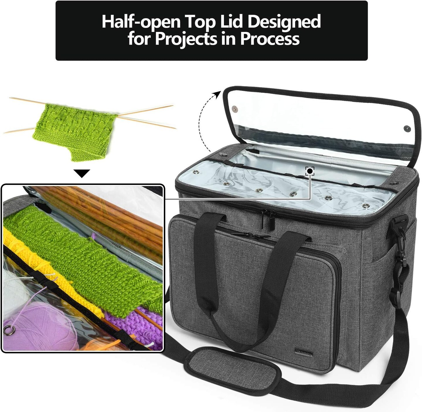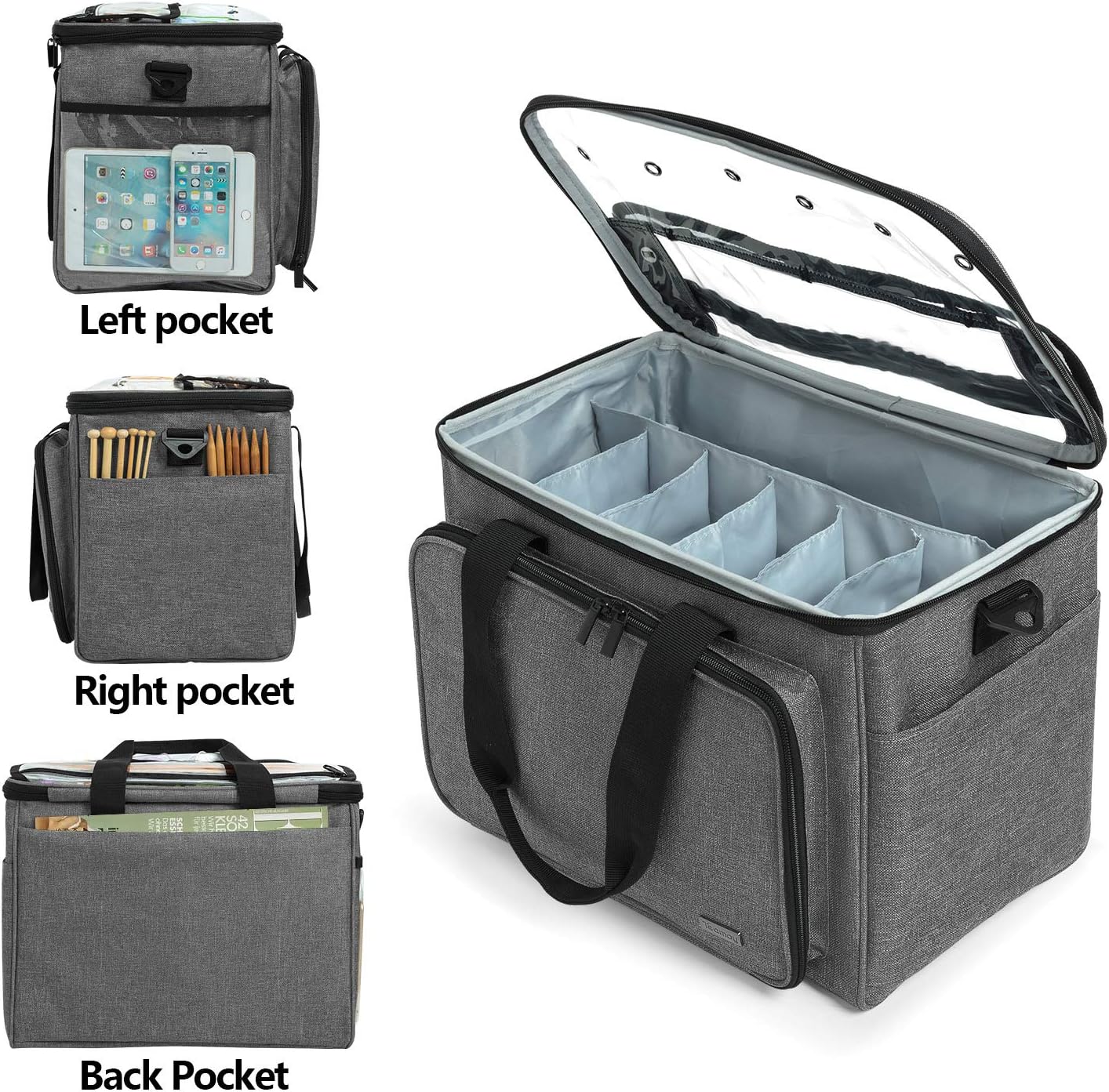 Knitting Bag - Yarn Tote Organizer with Inner Divider