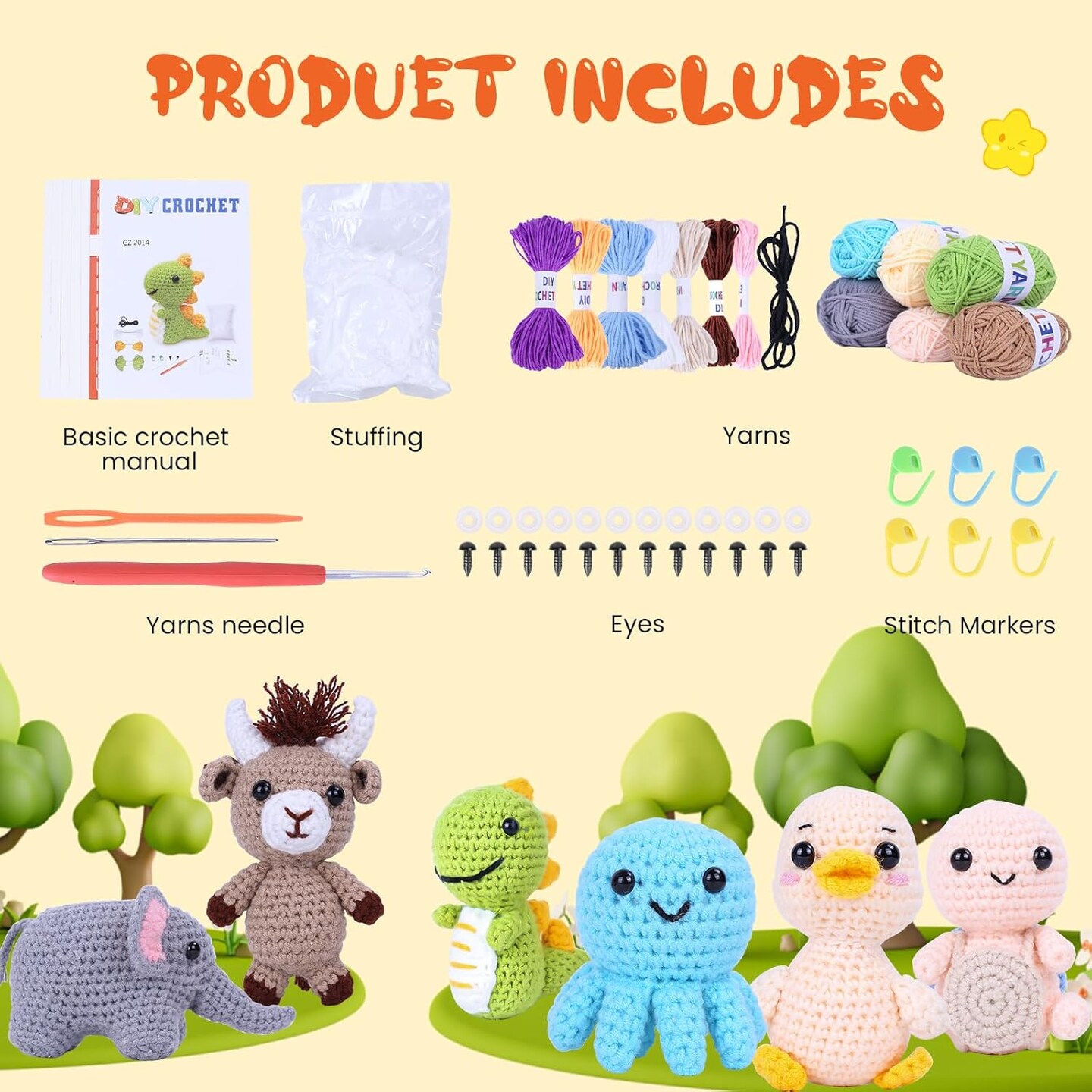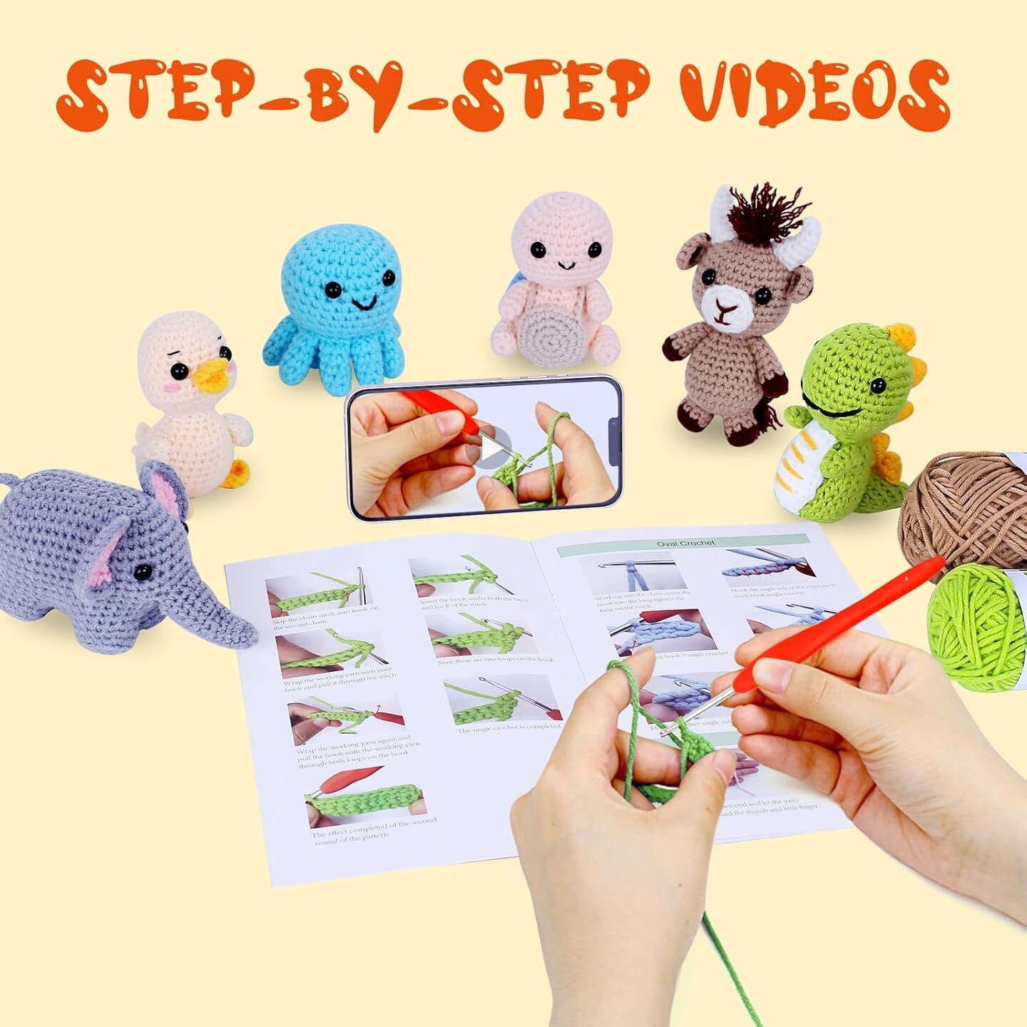 Knitting Kit for Beginners with 6 Pcs Crochet Animal Kit for Beginners in Step by Step Video Tutorials, Beginner Crochet Kit