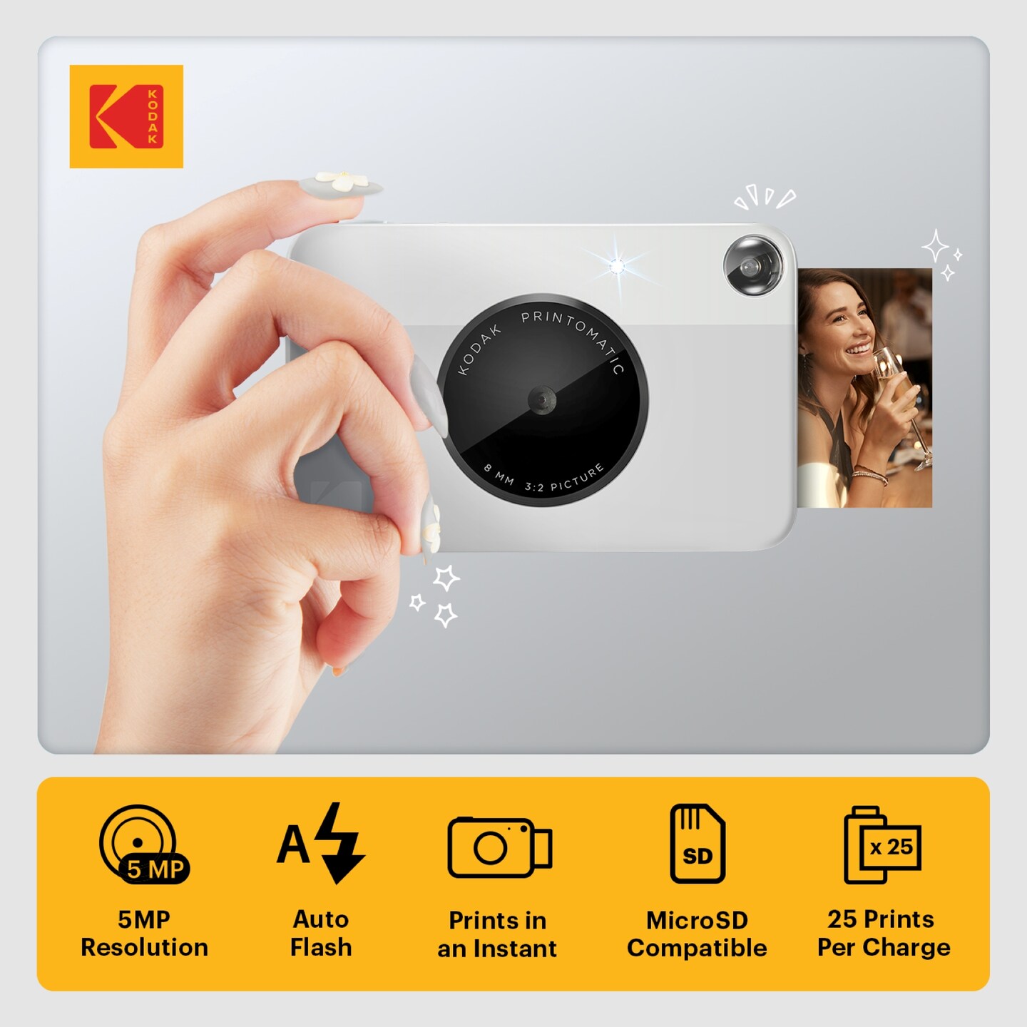KODAK Printomatic Digital Instant Print Camera, Supports Sticky-Backed 2x3" Zink Photo Paper