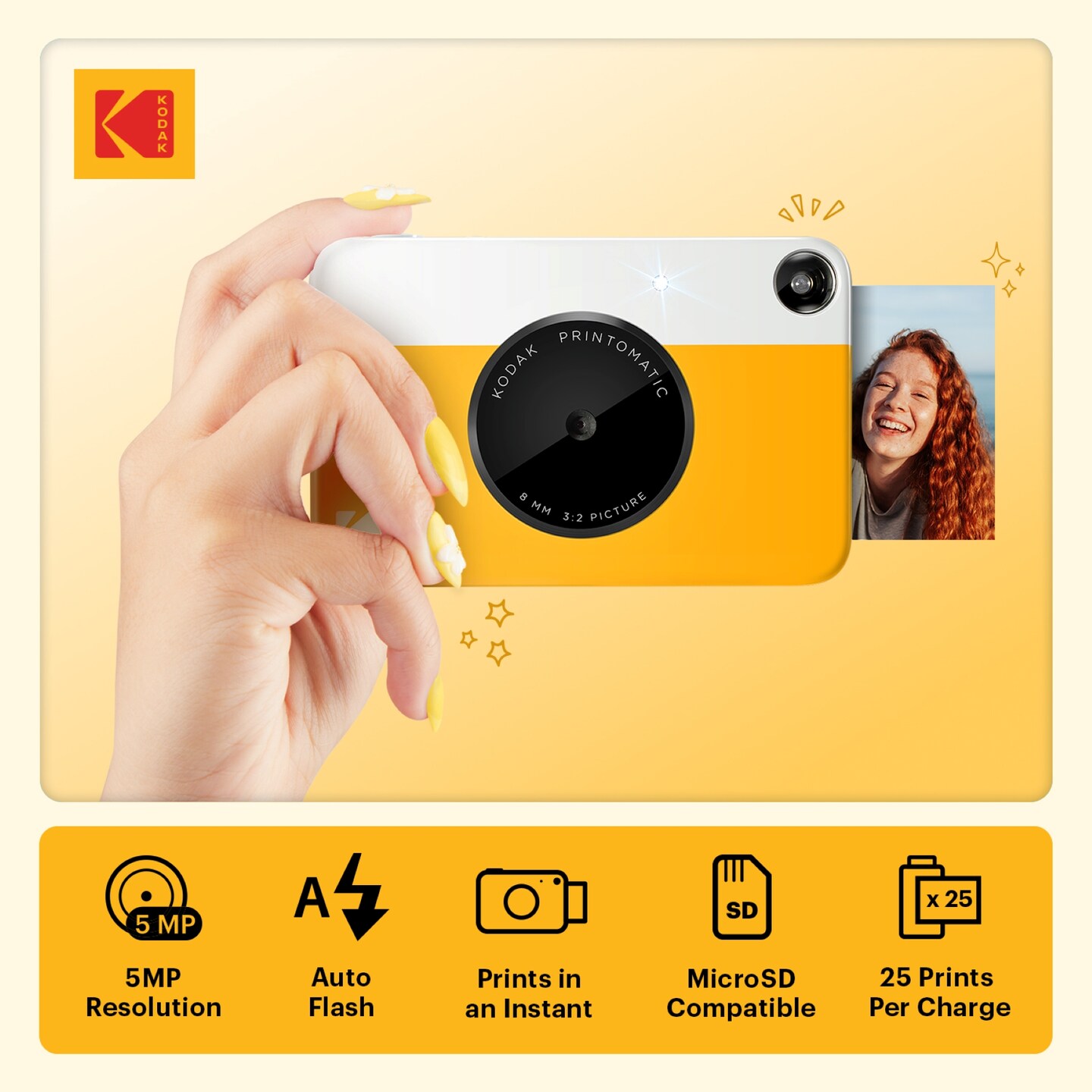 KODAK Printomatic Digital Instant Print Camera, Supports Sticky-Backed 2x3" Zink Photo Paper