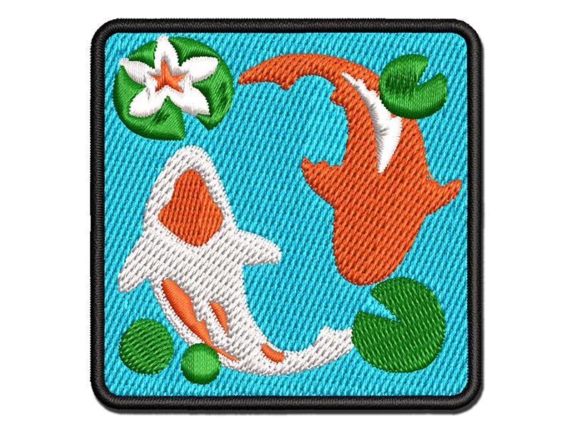 Koi Fish Pond Multi-Color Embroidered Iron-On or Hook & Loop Patch Applique