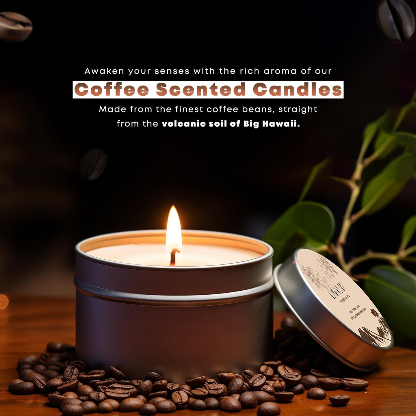 Kona Coffee Bean Scented Candle – 6 oz Natural Soy Wax Candle with Strong Coffee Aroma – Long Lasting, Clean Burning, Relaxing Gift for Women & Men, Mother’s Day, Birthday & Home Décor