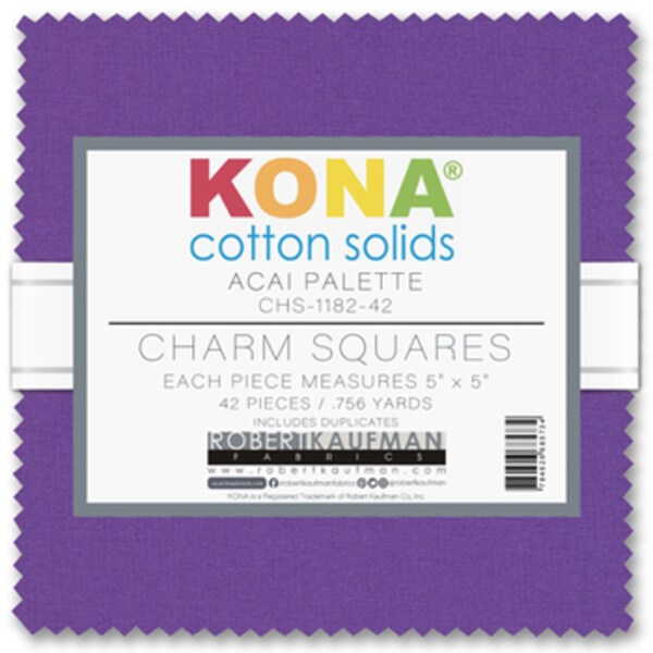 Kona Solid 5" Square Pack (Charm Pack / Charm Square) in Acai by for Robert Kaufman (CHS-1182-42)