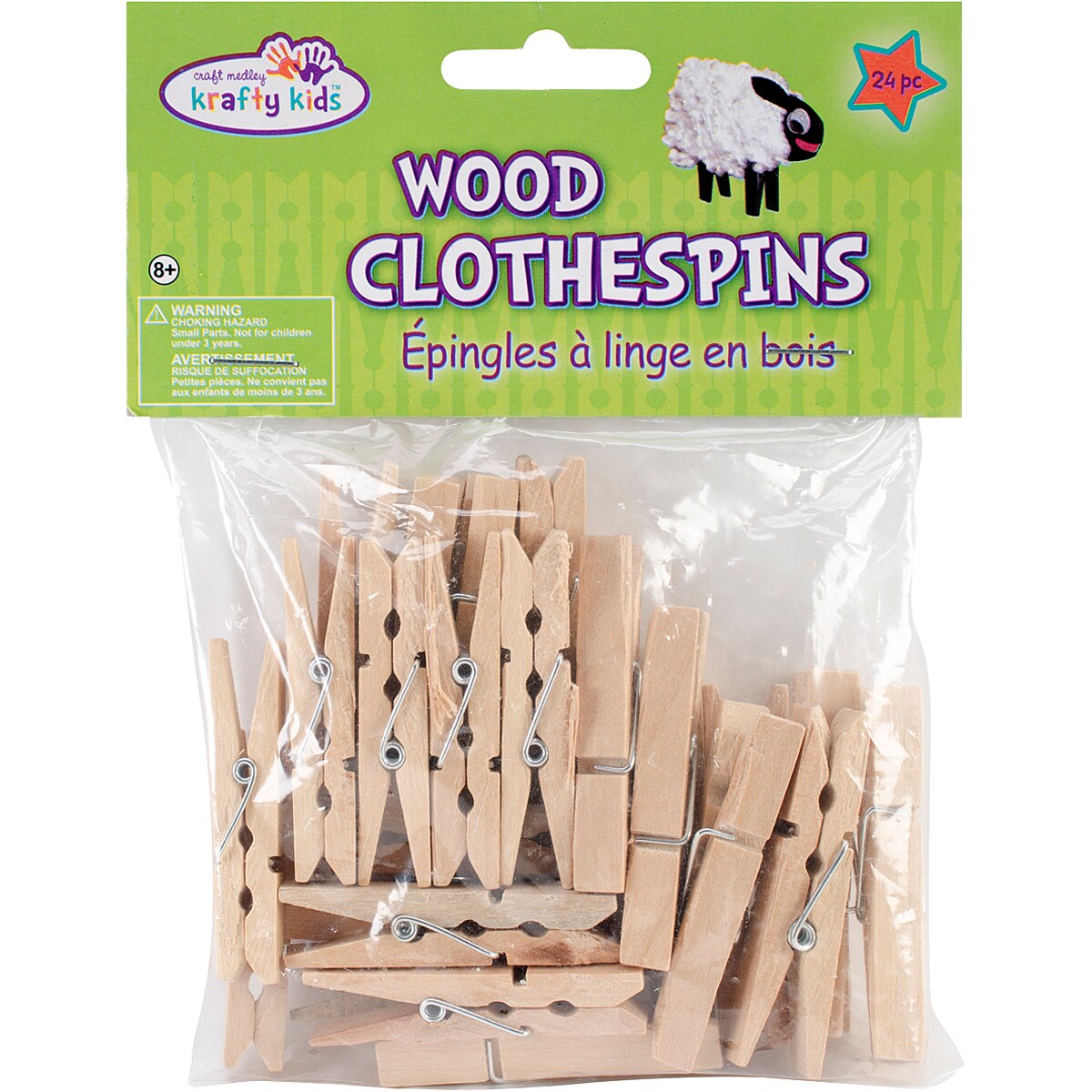 Krafty Kids Wood Clothespins-Natural 1.875" 24/Pkg